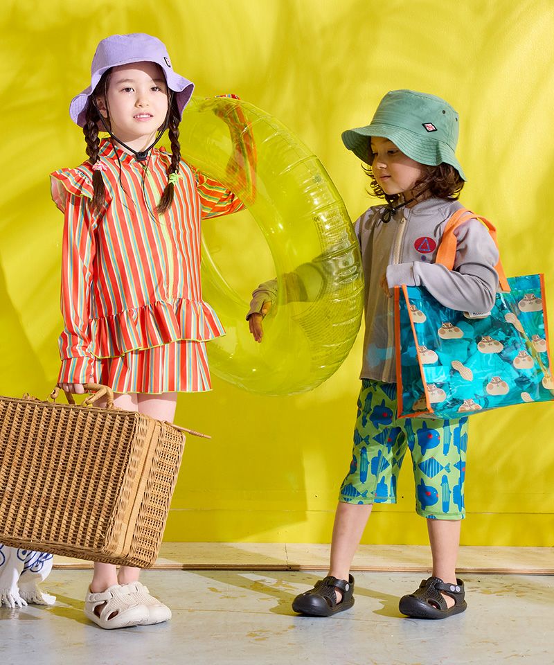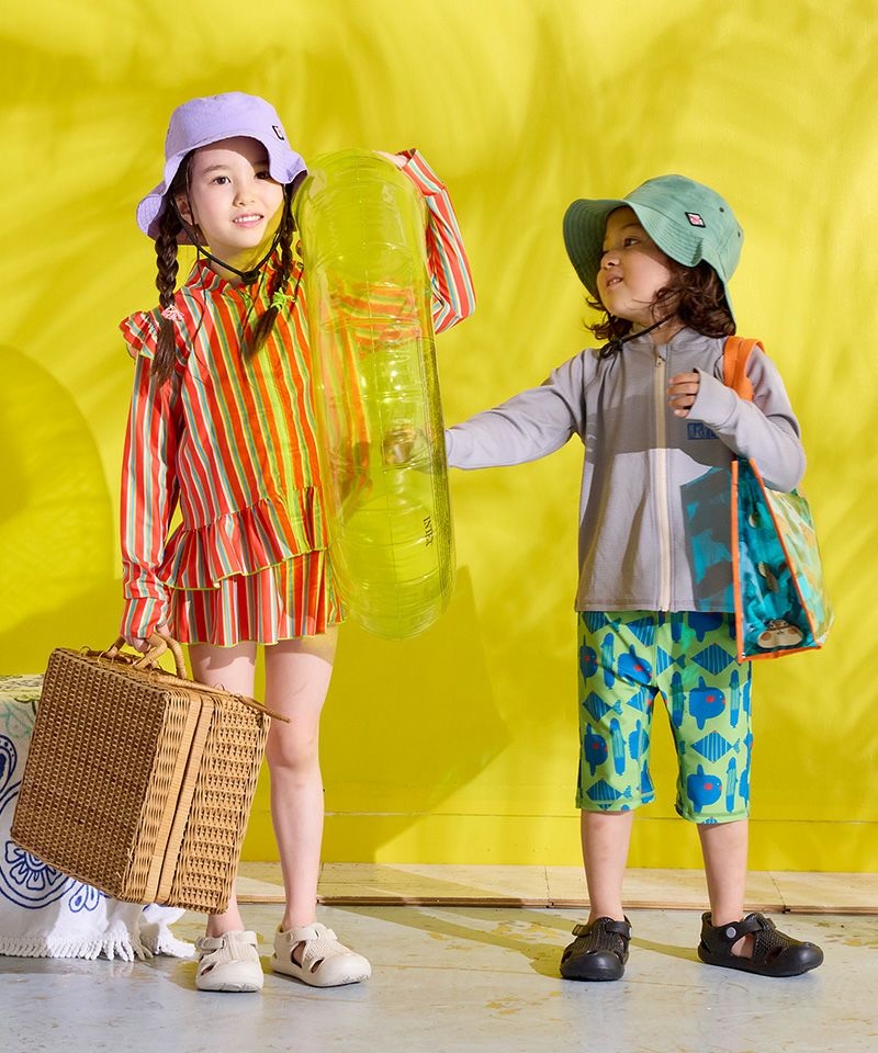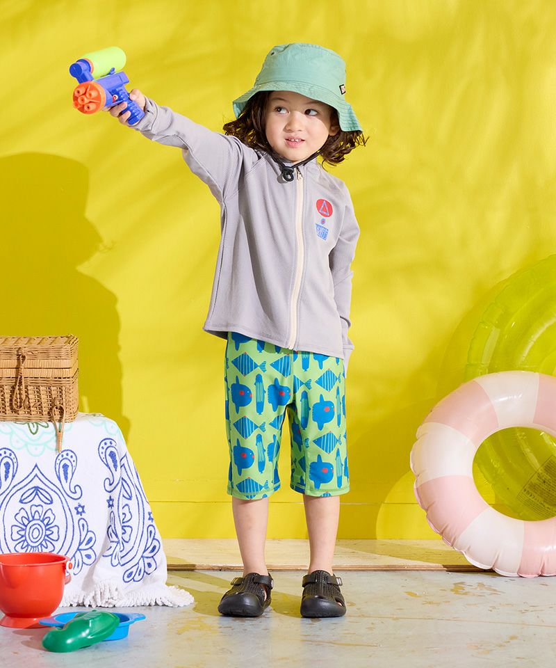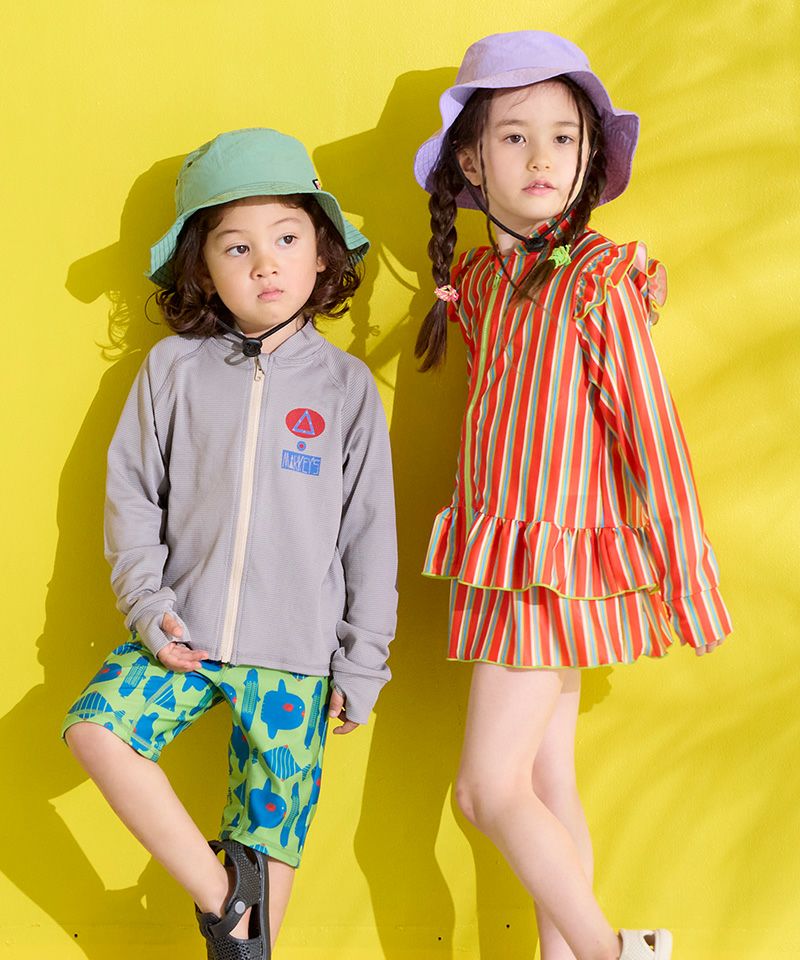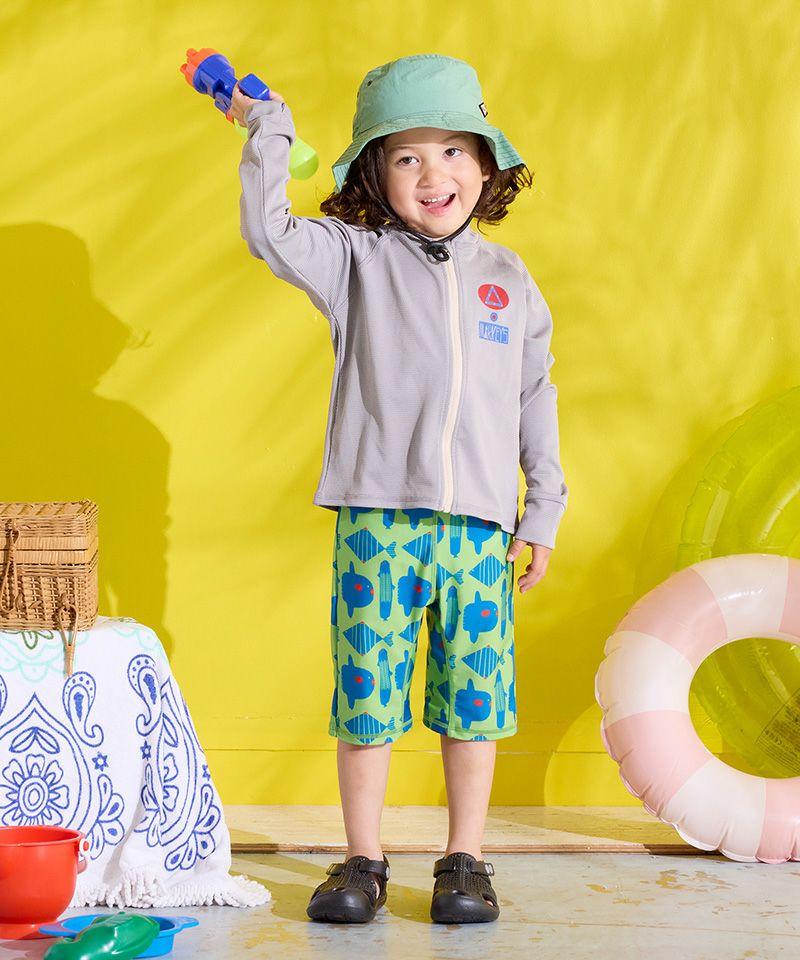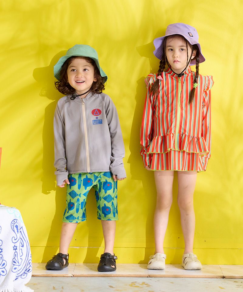 同柄のベビーラッシュガードスーツできょうだいリンクコーデも可能です。