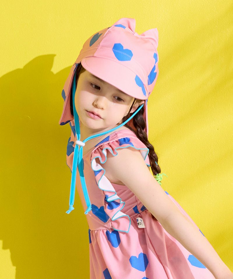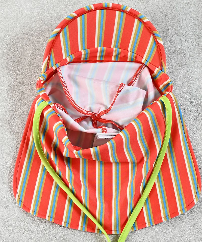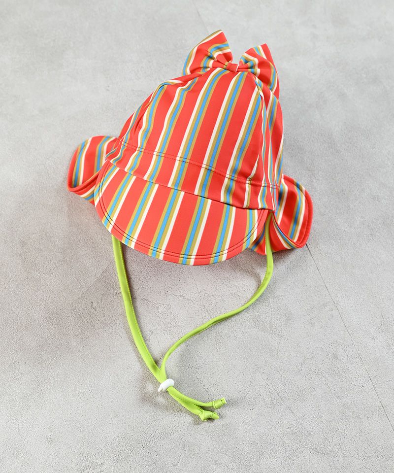 ヒモは長さを調整できるストッパー付きで、お子様の頭のサイズに合わせて被ることができます。