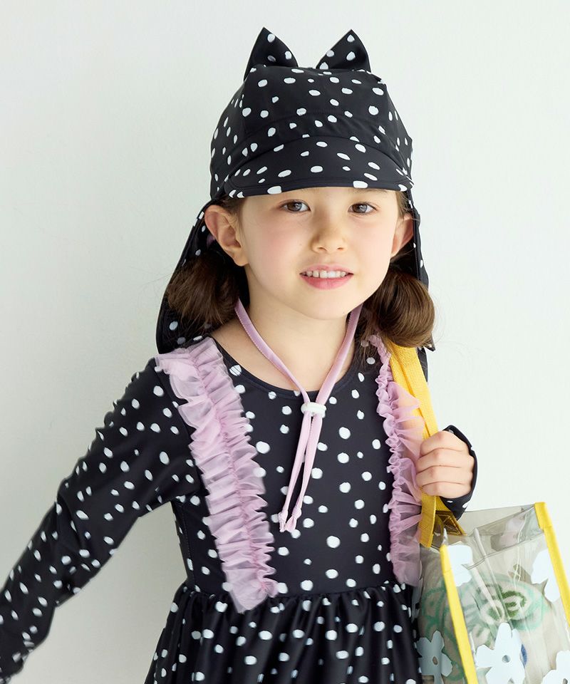 伸縮性のある生地感でツルっとしているのでお子様ひとりでも被りやすい!