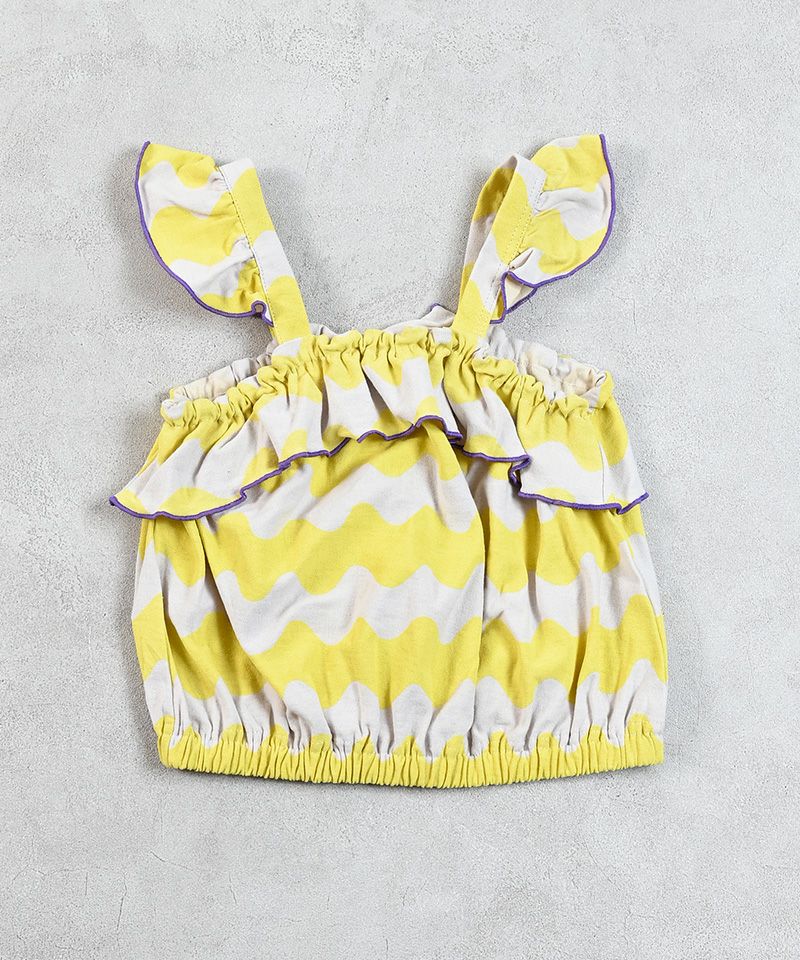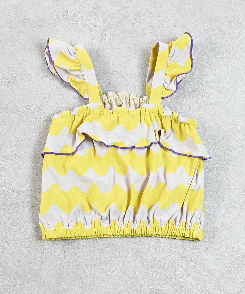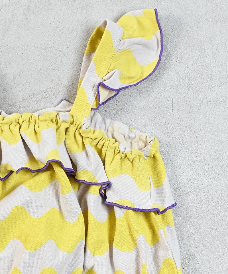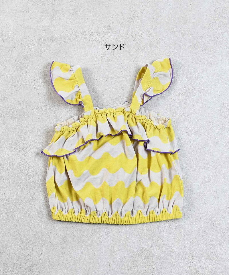 肩紐と胸元にあしらった、たっぷりフレアがガーリーデザインなフリルキャミソール。