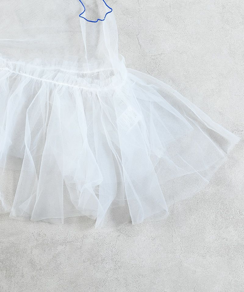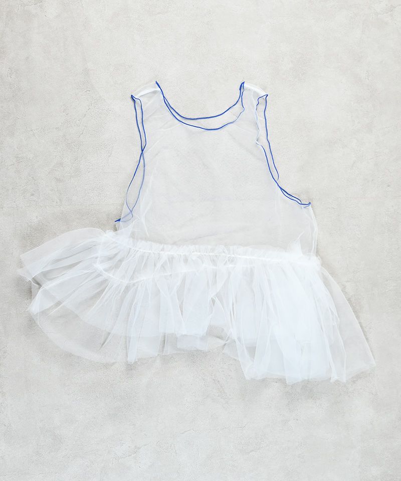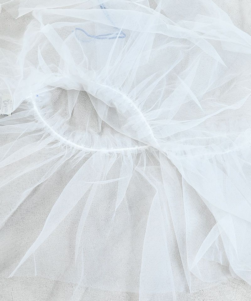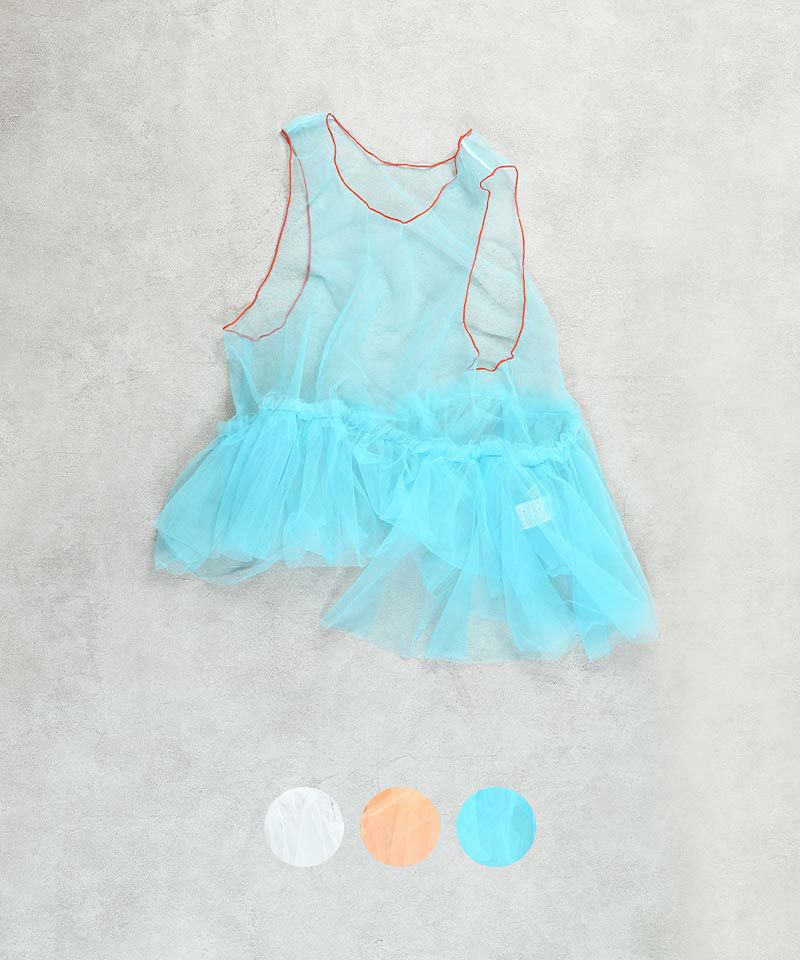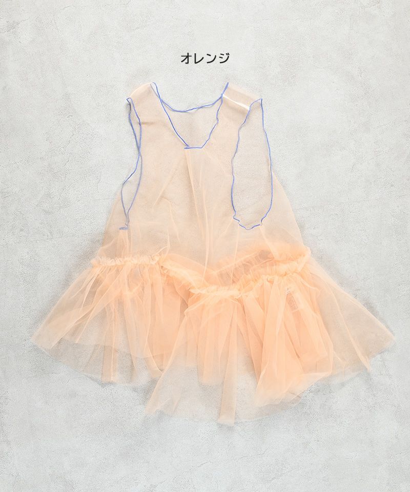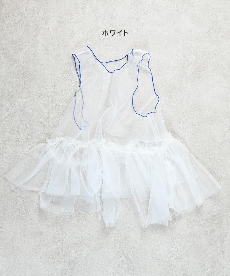 トレンドの透け感と裾のボリュームフリルが可愛い、チュールチュニック。