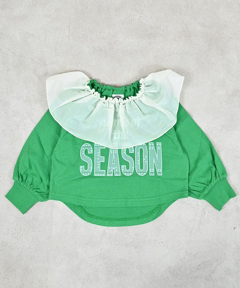 首元とにふんわりフリルをあしらったガーリーなロンT。