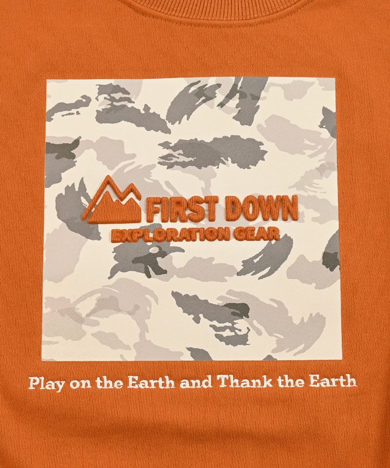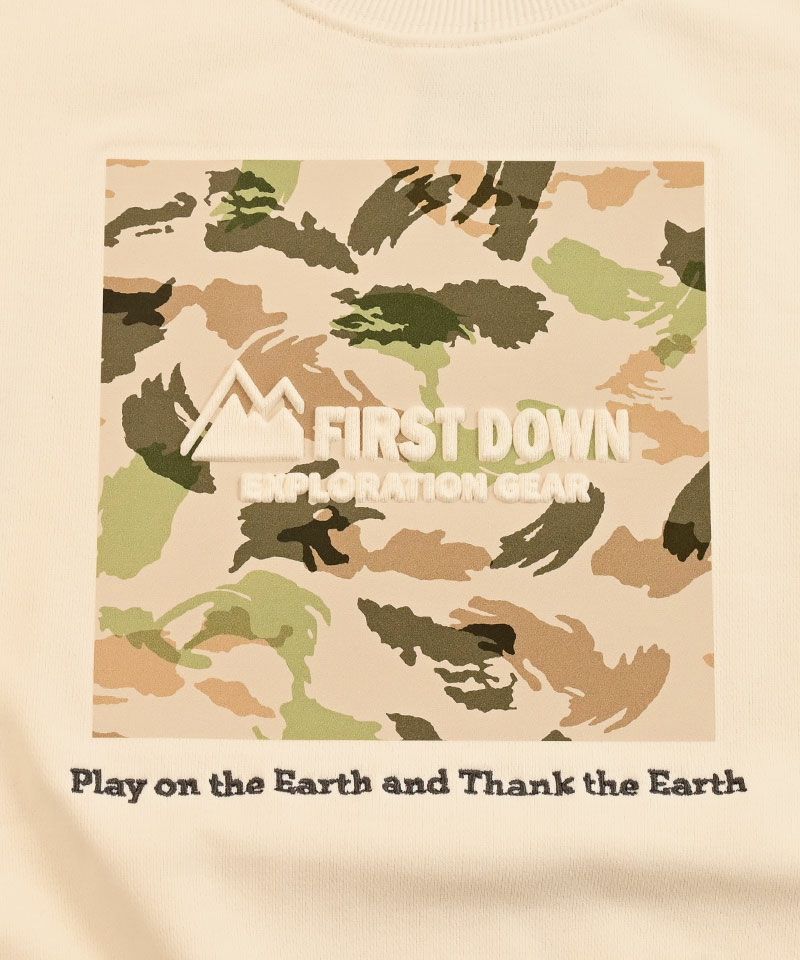 FIRST DOWNらしい迷彩柄に重なったフロッキープリントが◎