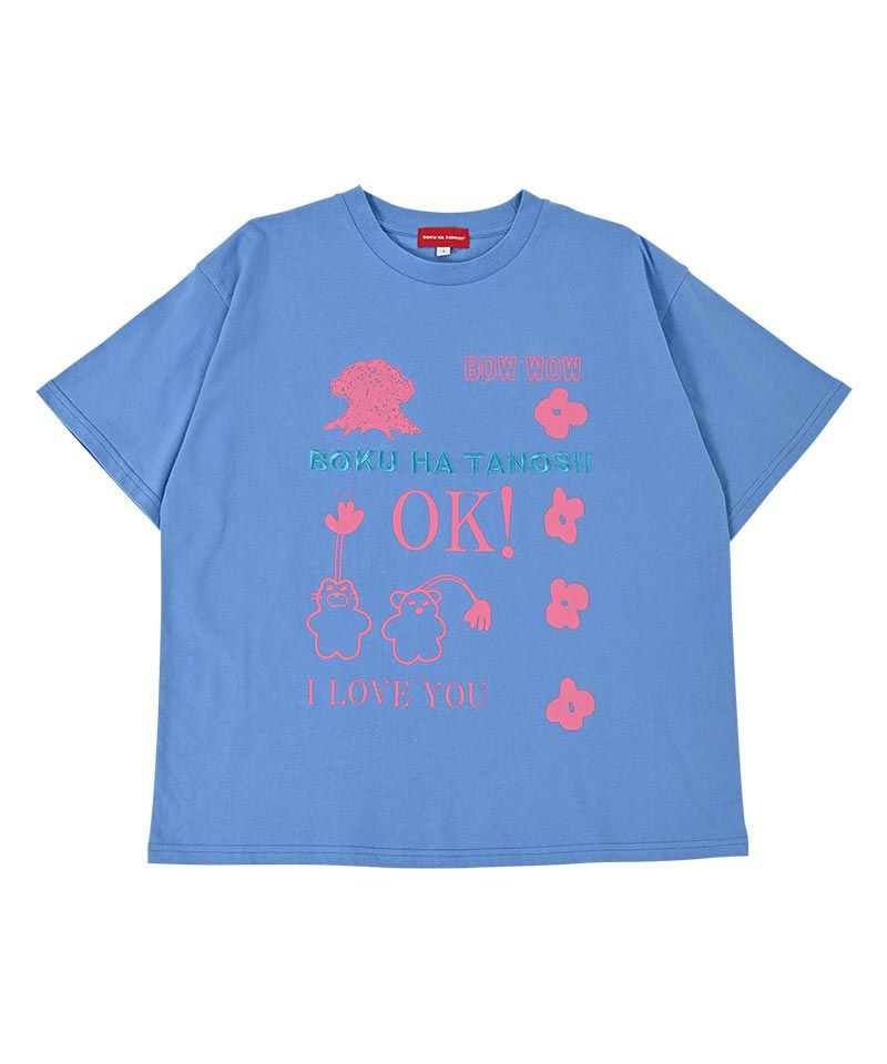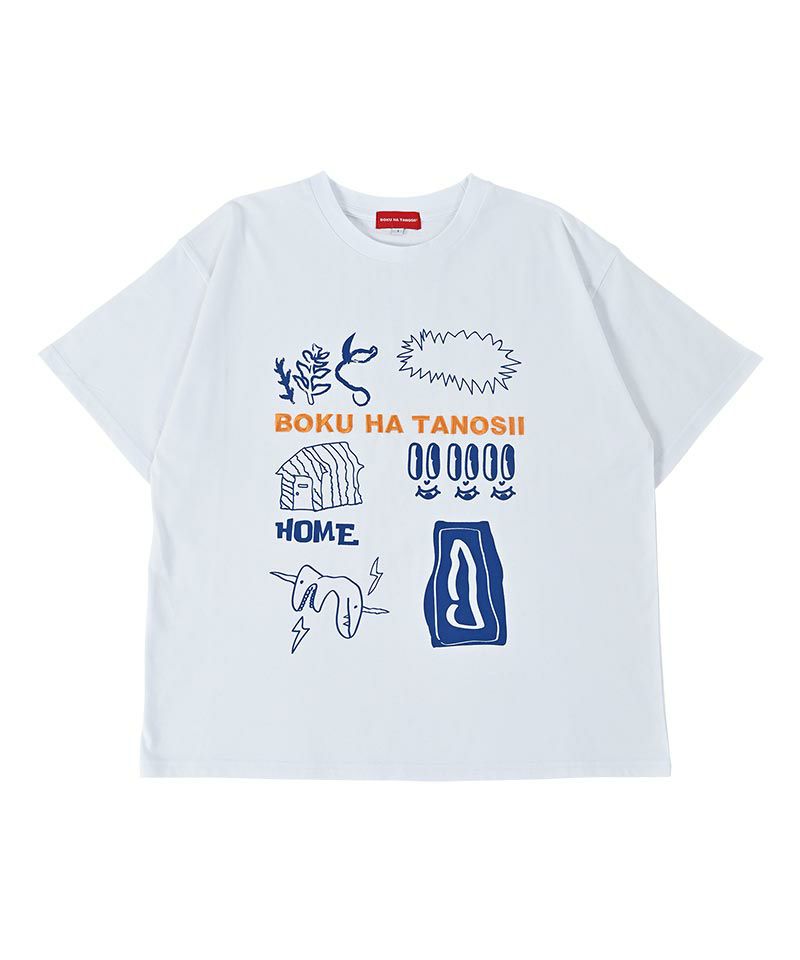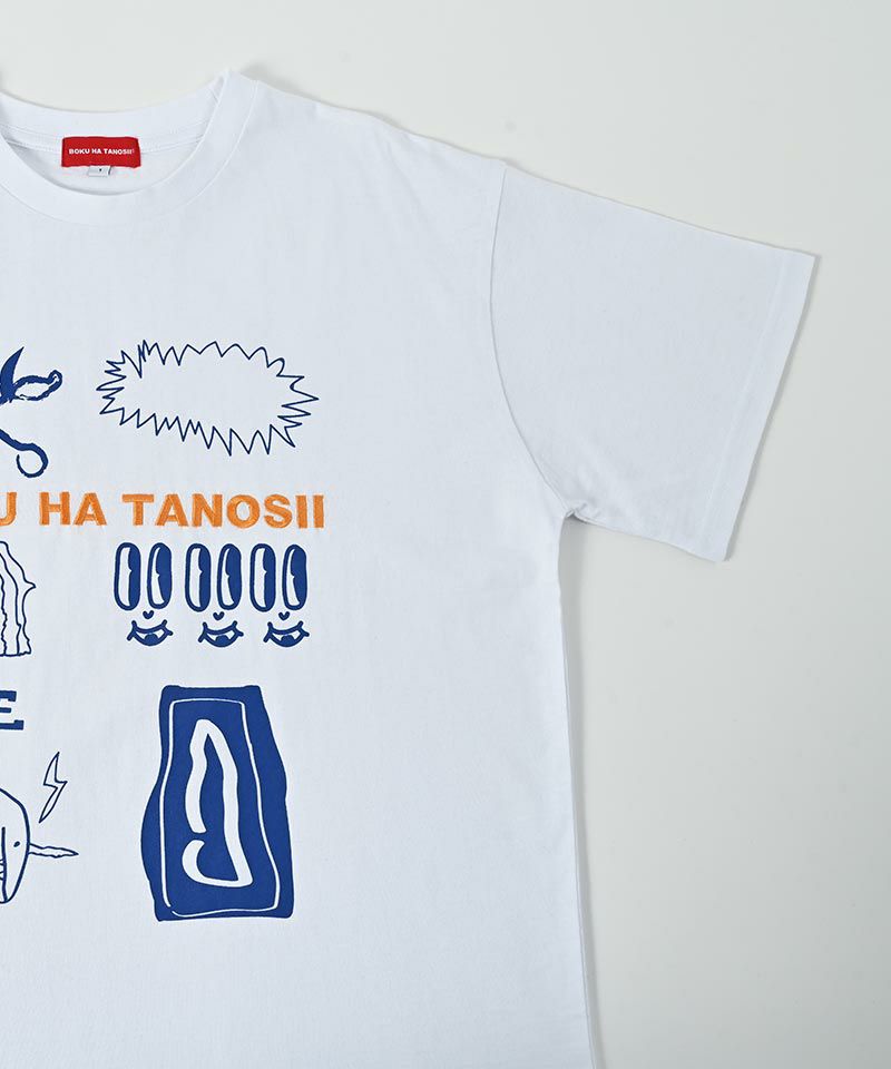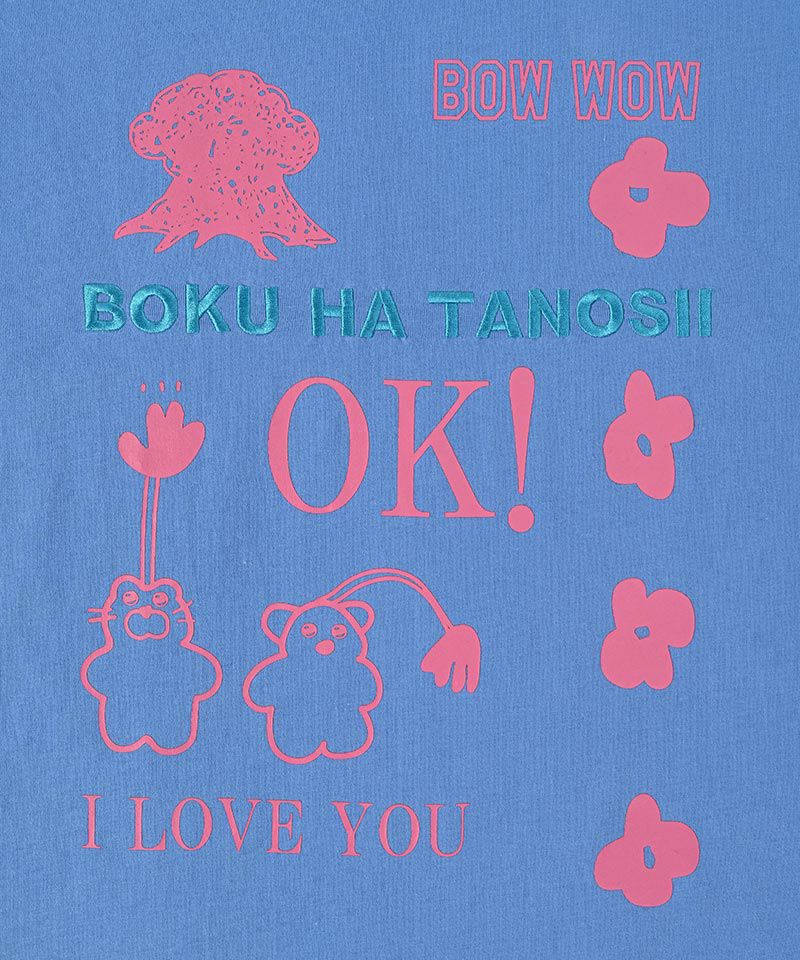 フロントに『BOKU HA TANOSII』の刺繍と遊び心あふれるラクガキプリント。