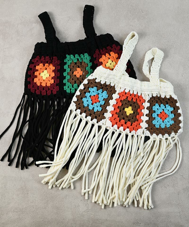 | サイズ | クロシェ幅 | クロシェ丈 | フリンジ丈 | 肩紐(全長) |