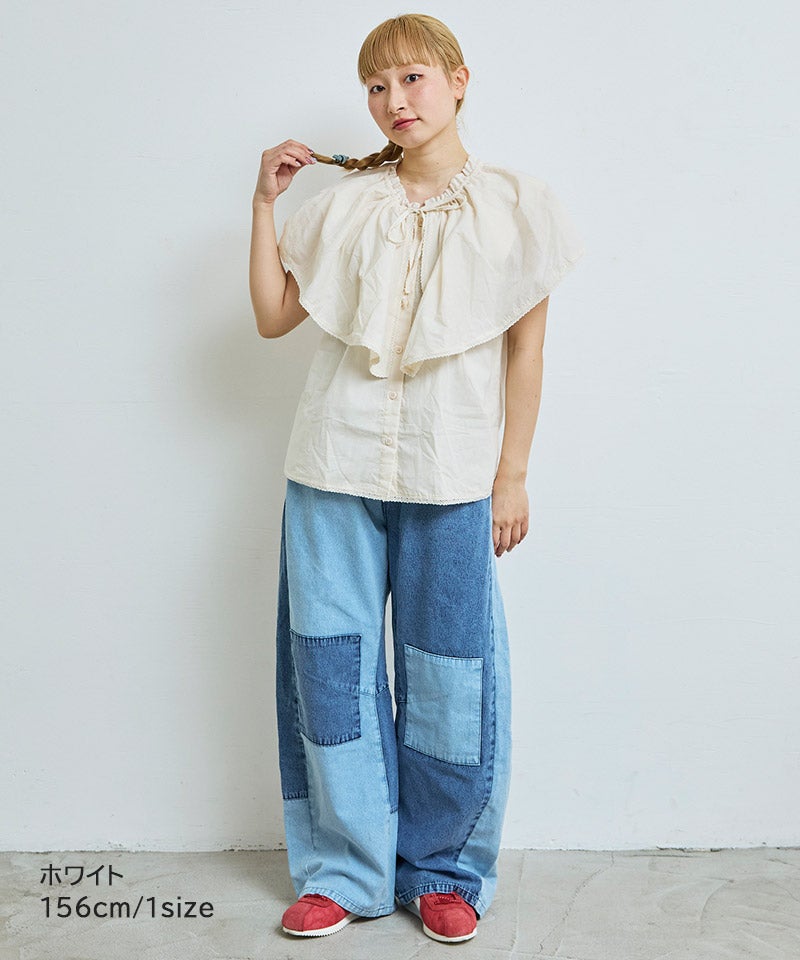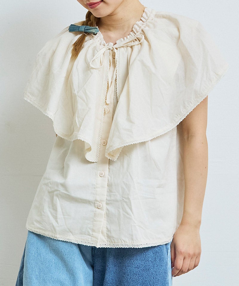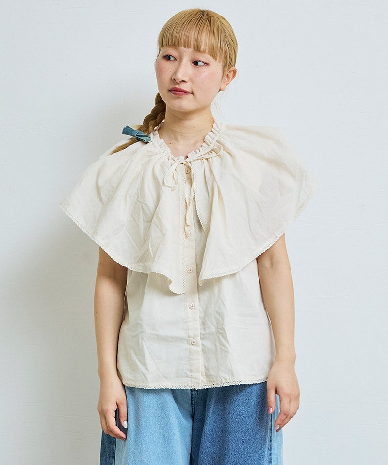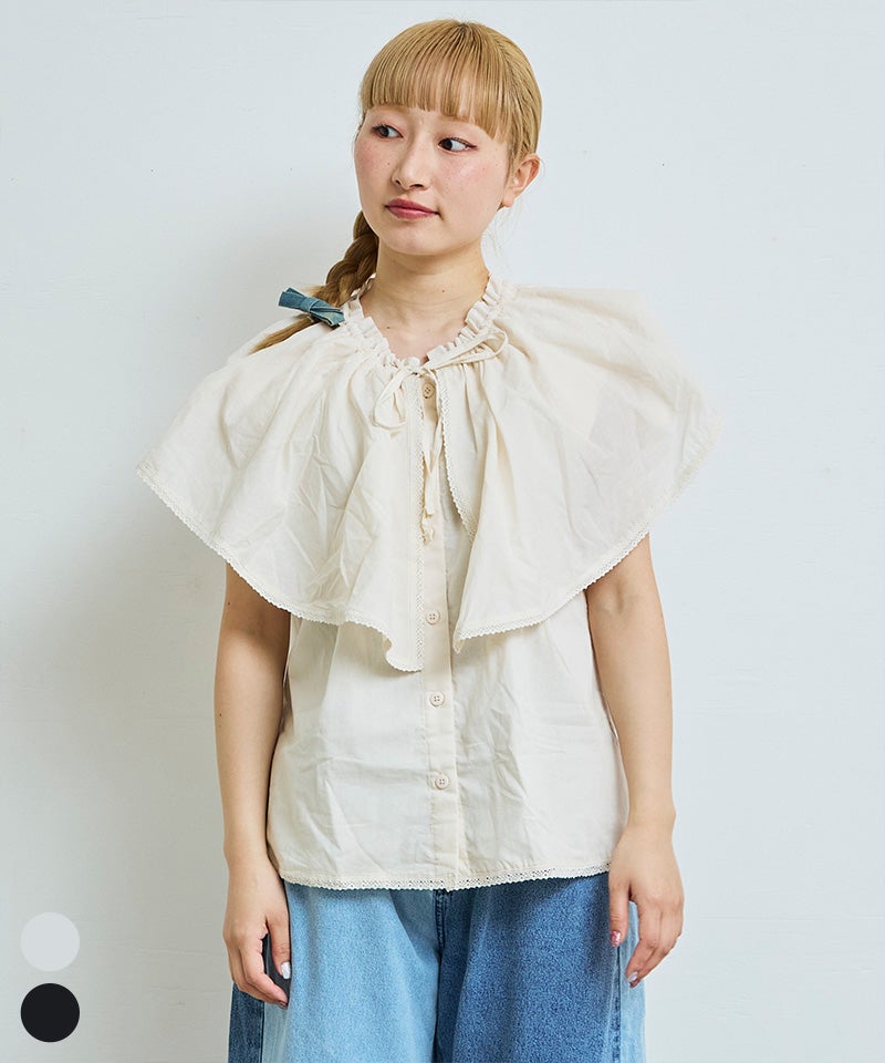 【大きめカラーが目を引く、上品ガーリーなノースリーブブラウス】