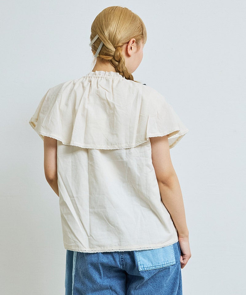 顔まわりを華やかに見せてくれるビッグカラーが印象的なブラウス。