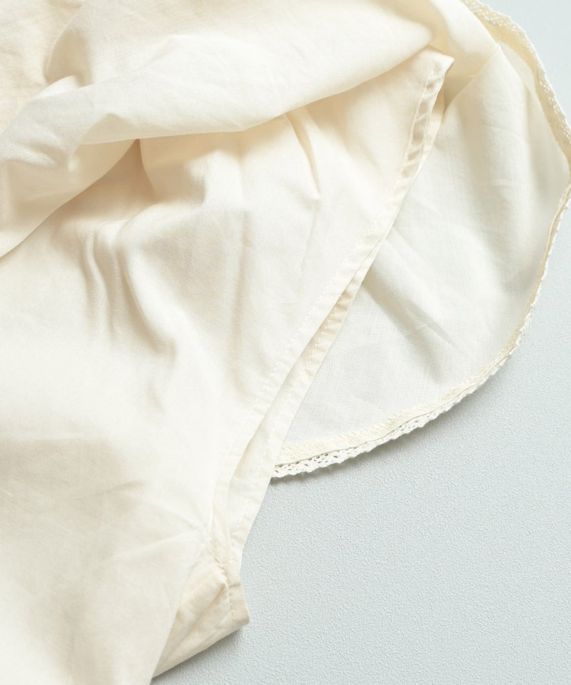 はしごレースやリボンのディテールが、さりげなく可愛らしいアクセントに。
