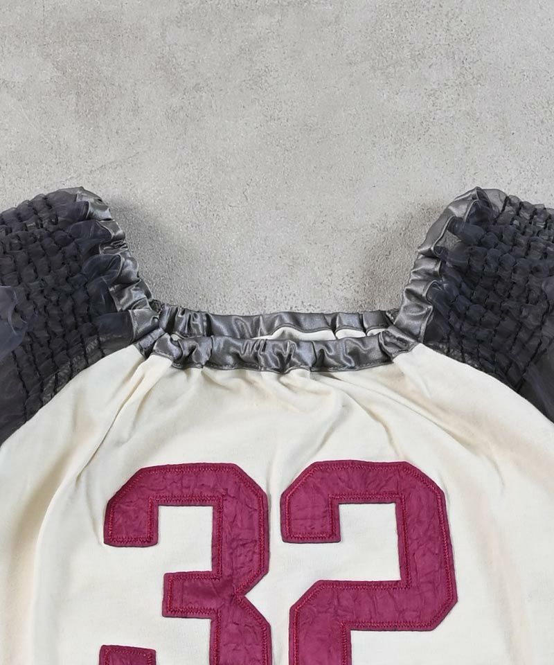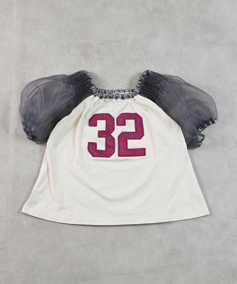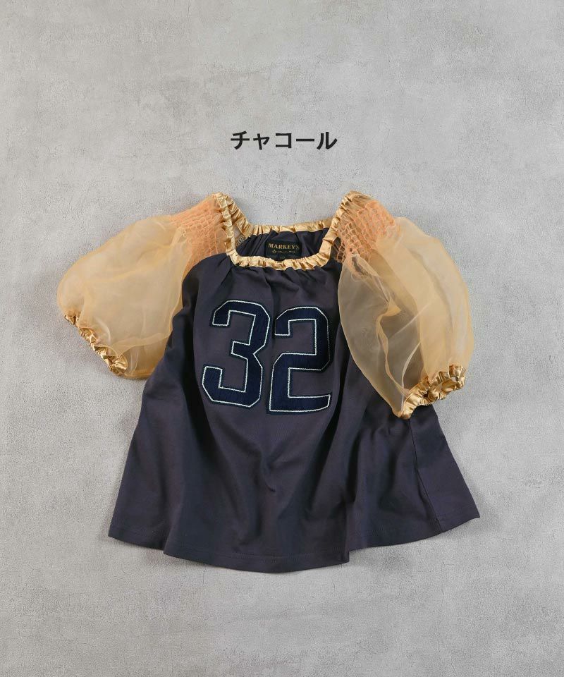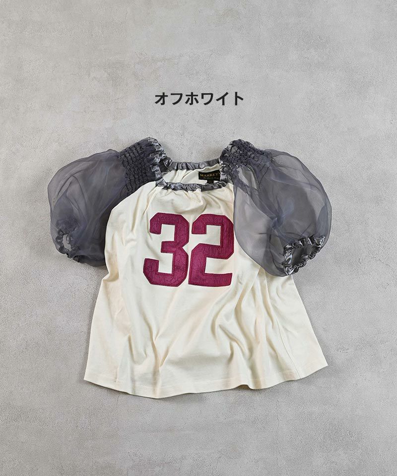 目を惹くサテン生地のパフスリーブが可愛らしい印象に♪