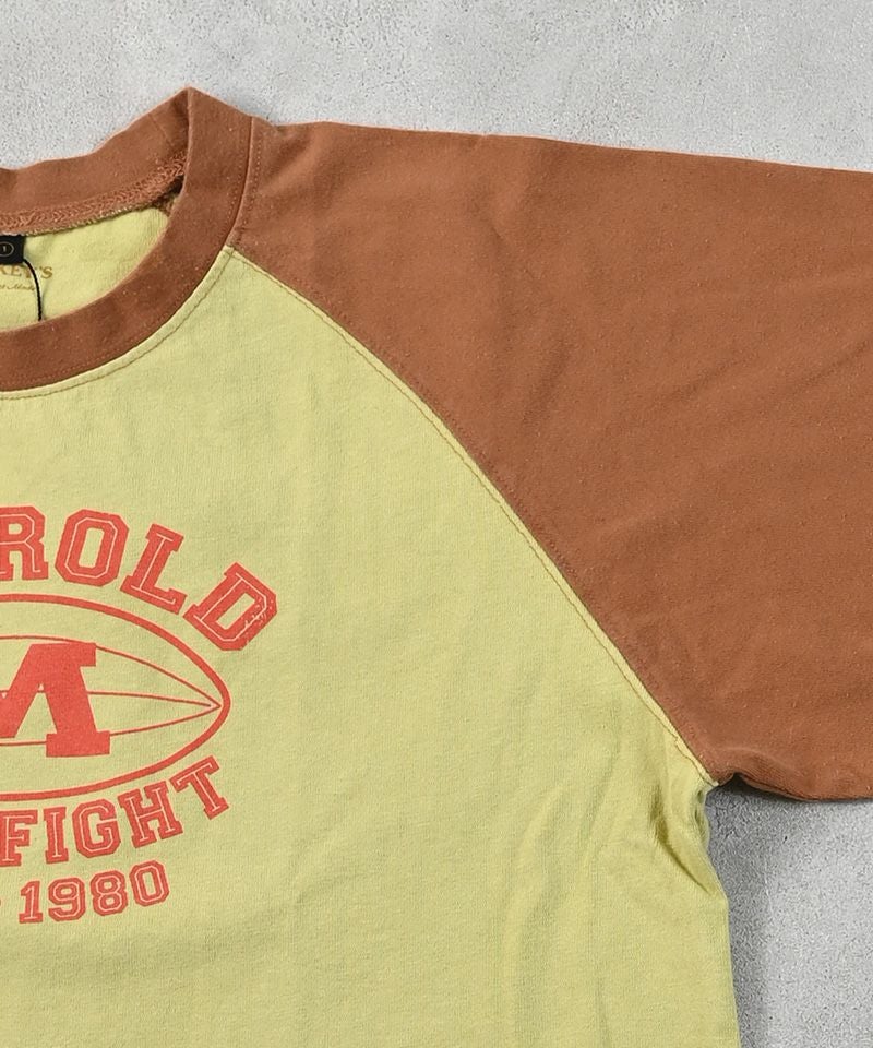 色褪せ感とラグランデザインが古着のような雰囲気を演出。