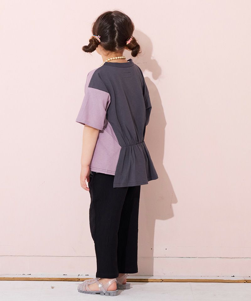 片側のウエスト部分にギャザーが入っているので、アシンメトリーシルエットに。