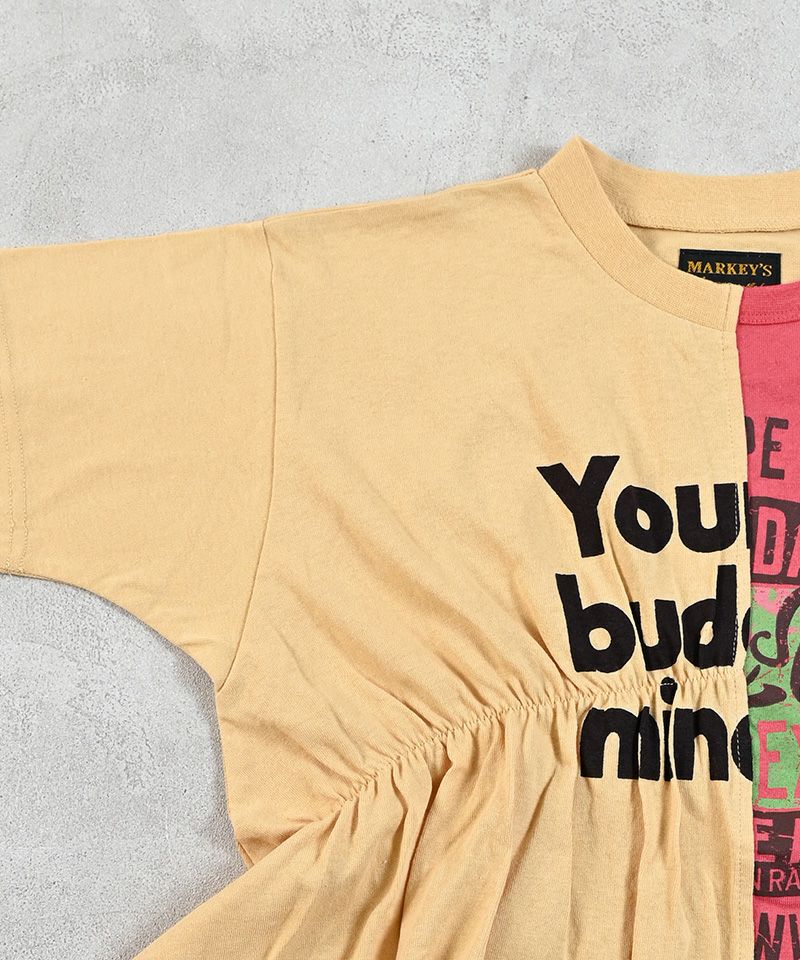 片側のウエスト部分にギャザーが入っているので、アシンメトリーシルエットに。