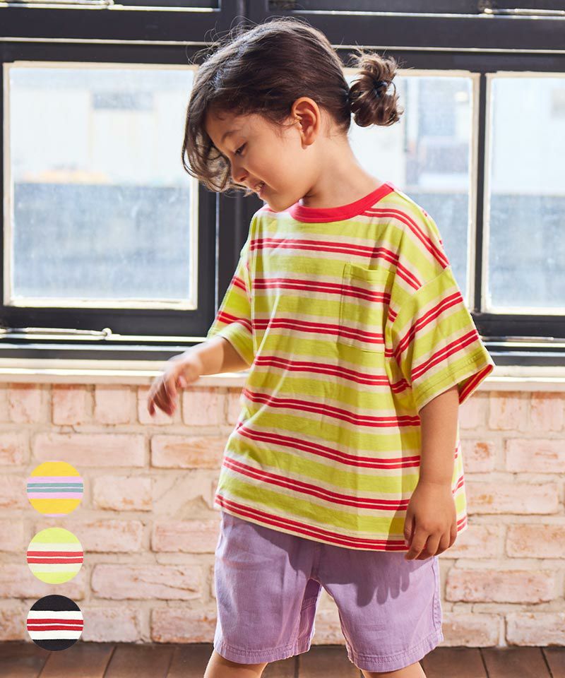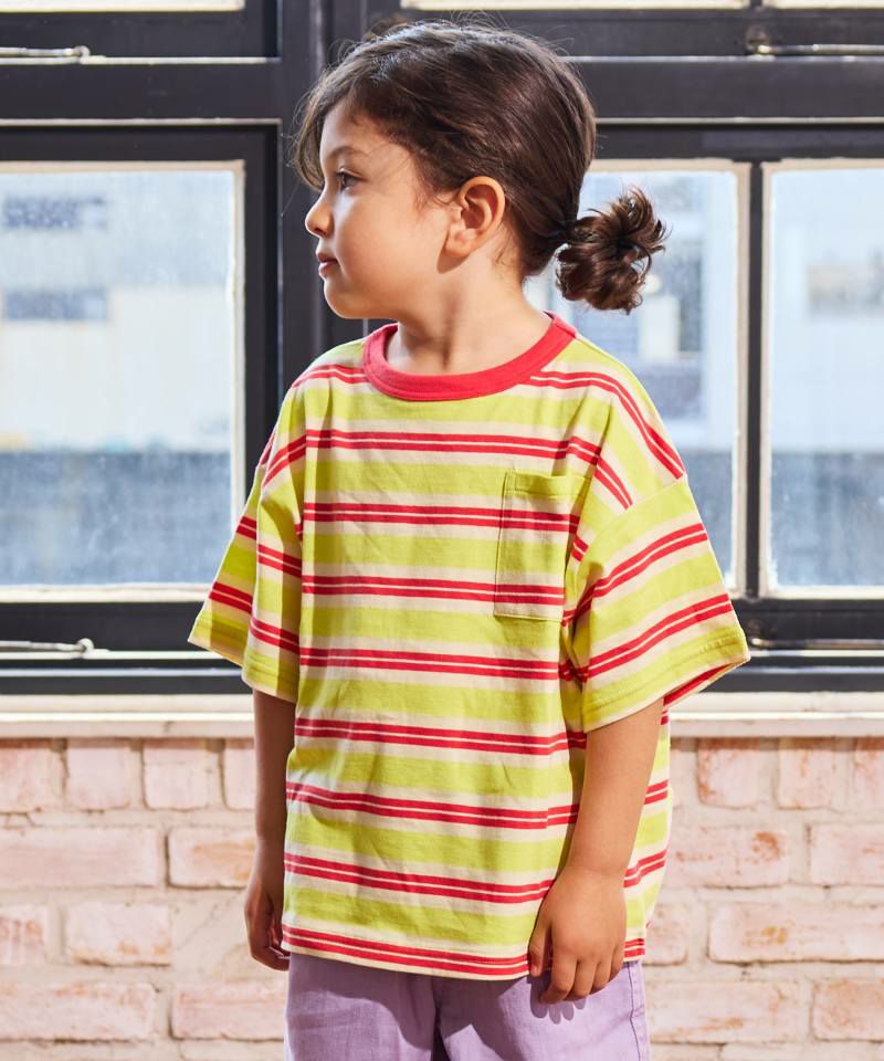 「先染めボーダーワンピース」と同じ柄なので、兄弟姉妹でお揃いリンクコーデもお楽しみいただけます。