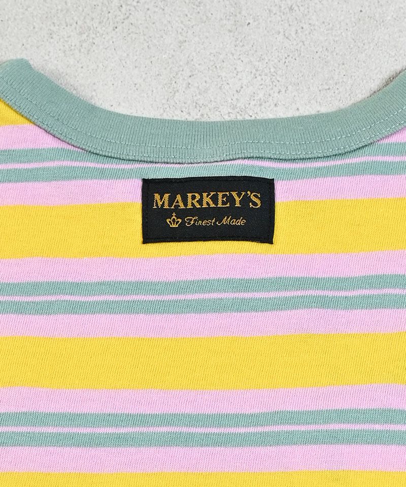 首元のカラーリングが目を惹くボーダートップス♪