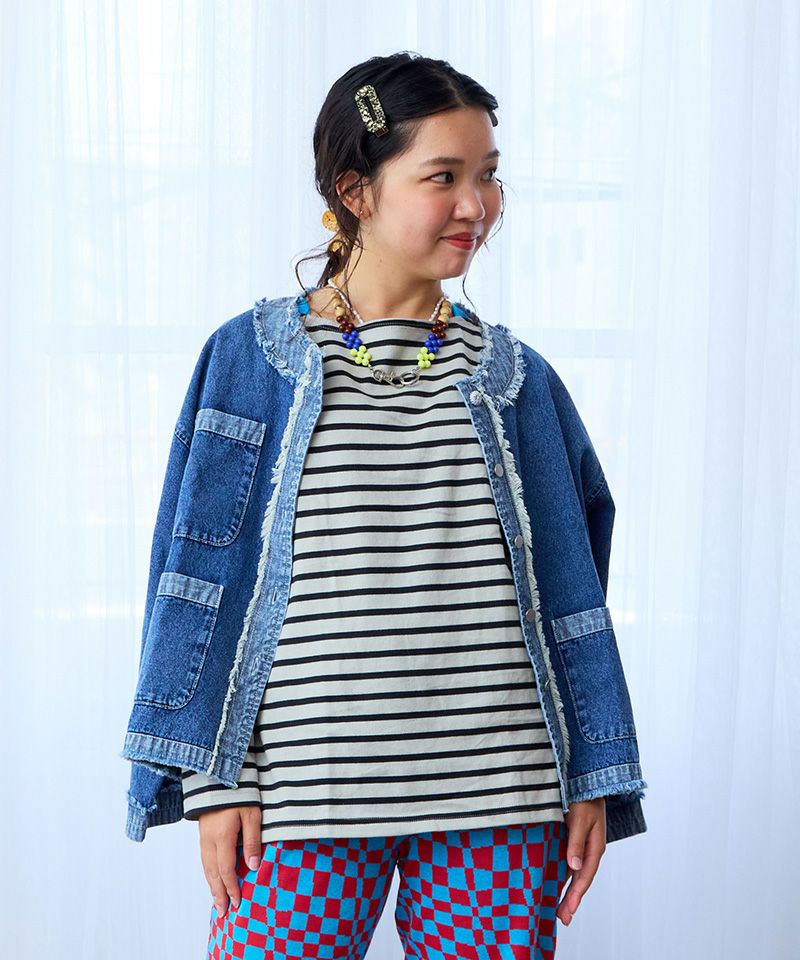 一枚で主役級の存在感なので、ボトムはデニムやシンプルなパンツでOK!