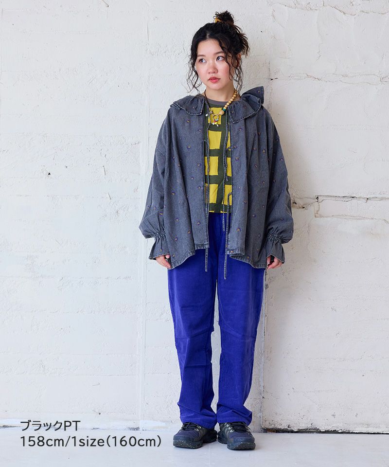 デニム素材ながらも軽やかな印象で、スカートやワイドパンツと合わせればガーリーに、デニムパンツやカーゴパンツと合わせればカジュアルに楽しめます。