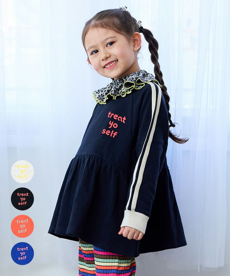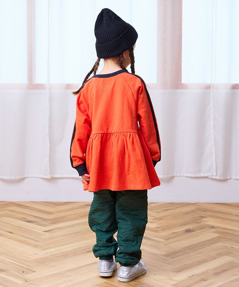 首元から袖にかけて入ったラインがアクセントになった裏毛チュニック。