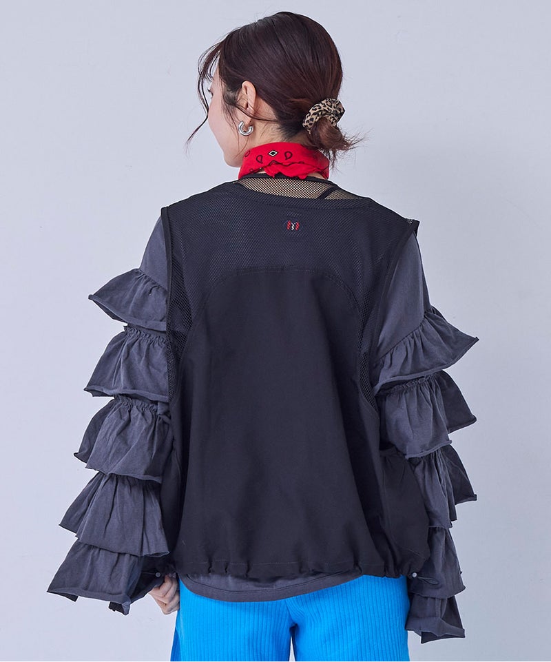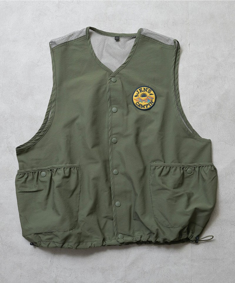 フロントのワッペンが目を引く、遊び心たっぷりのベスト。