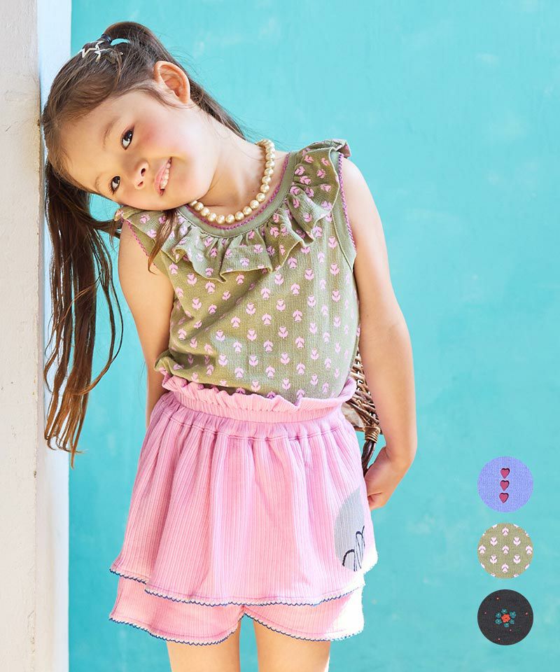 リブモチーフプリントキュロットパンツ