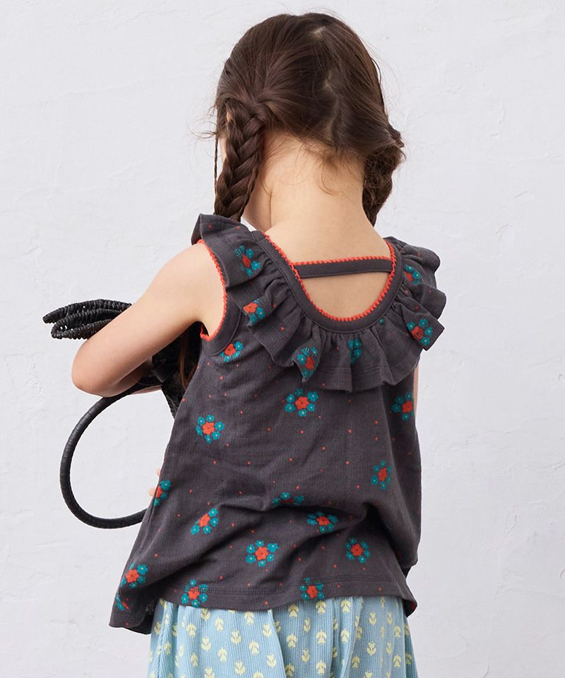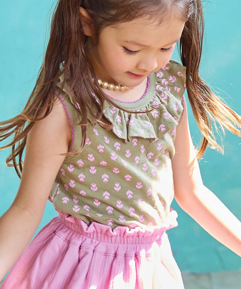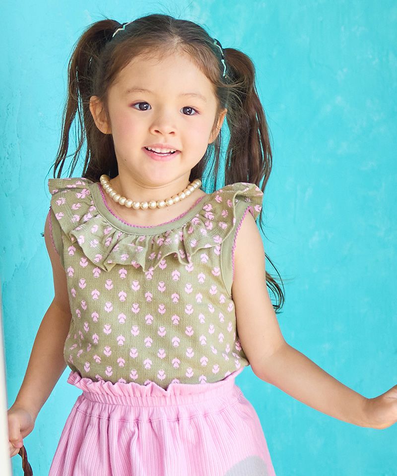 ギャザーたっぷりのフリルカラーがポイント。