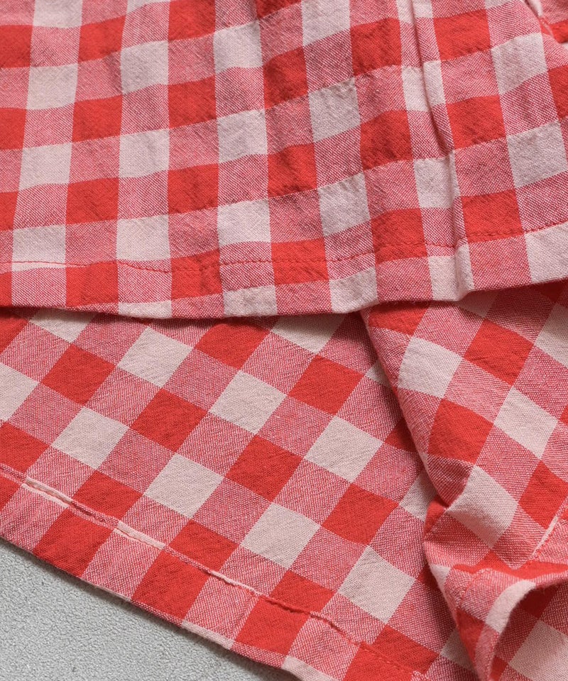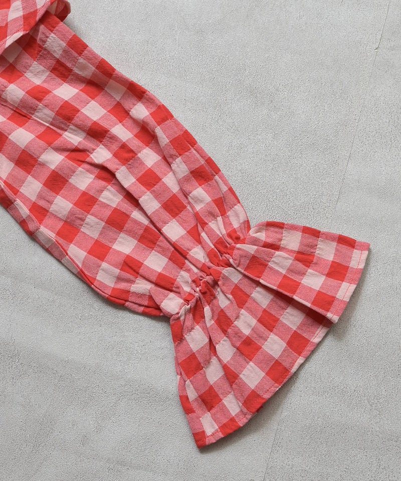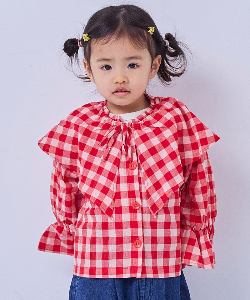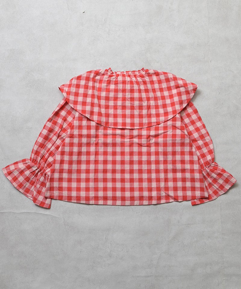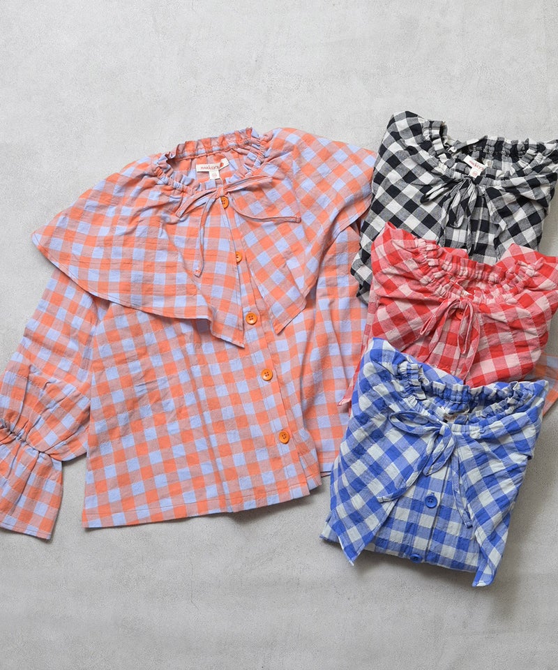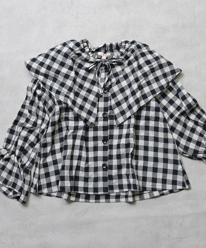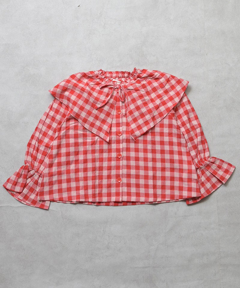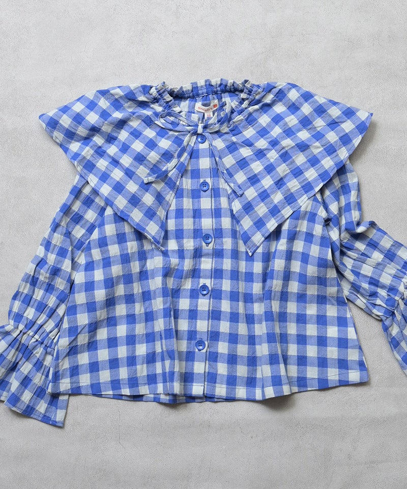 印象的なビッグカラーが目を惹くギンガムチェックブラウスです。