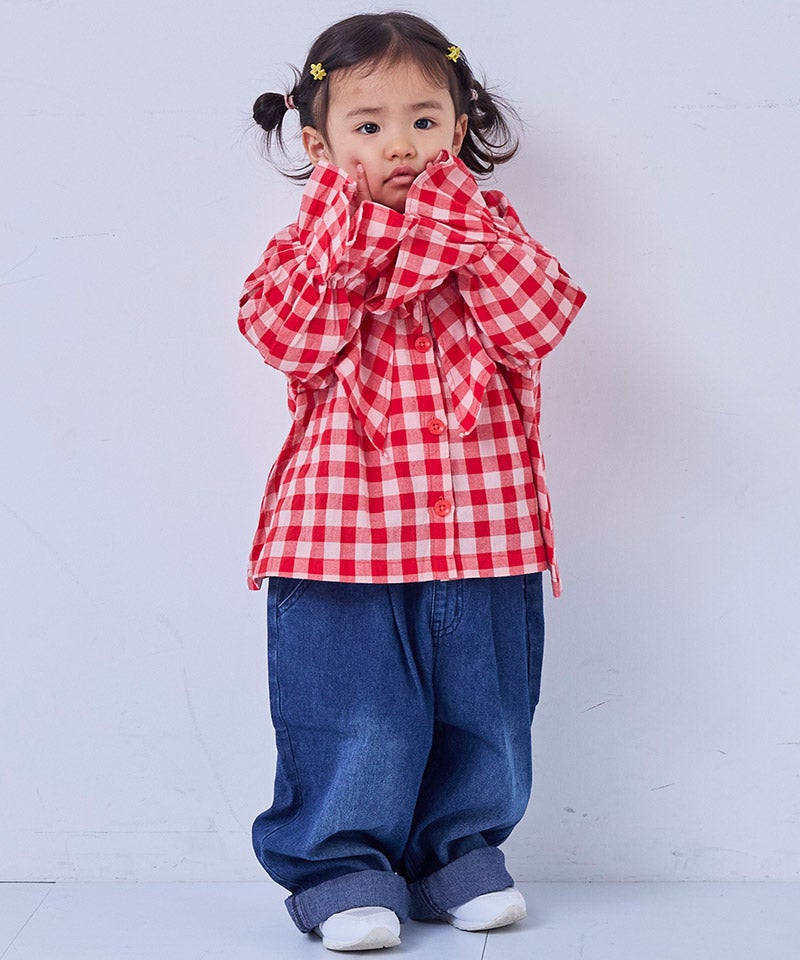 ジャンパースカートやサロペットのインナーに入れると、ビッグカラーが映えて写真映えも◎。