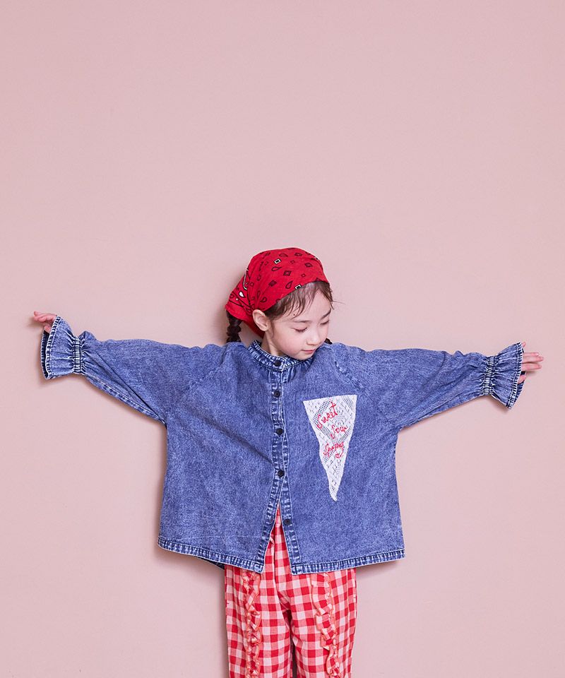 デニムフリルカラーブラウス
