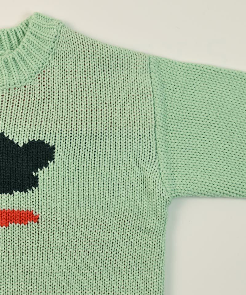 【おうちで洗えるニットシリーズ。遊び心溢れるモチーフが目を引くセーター】