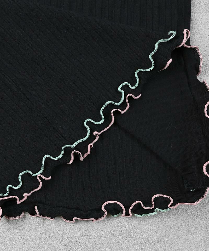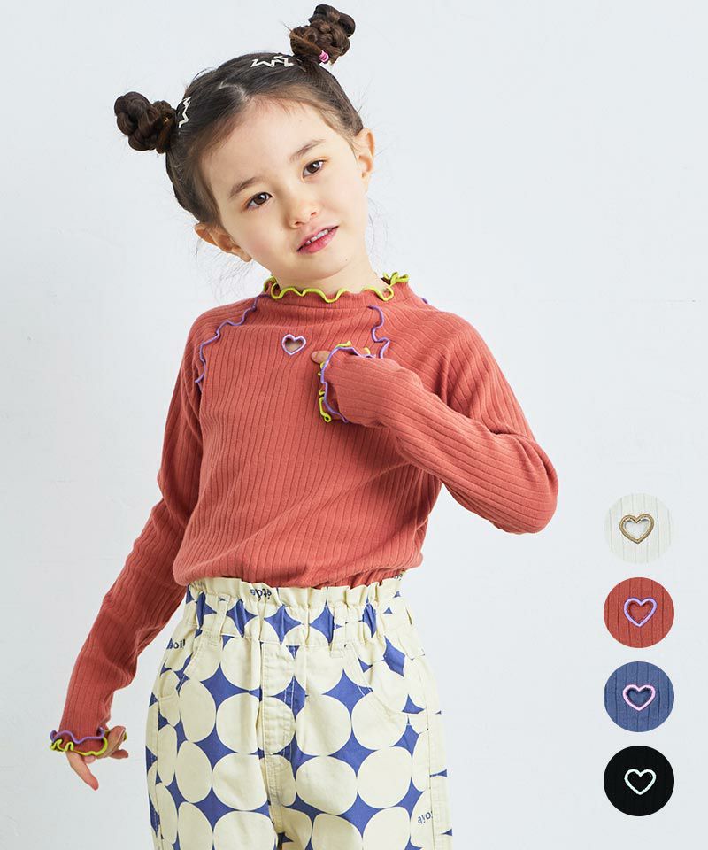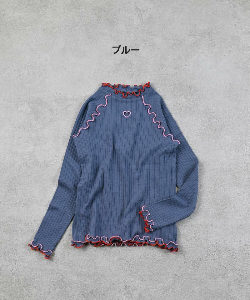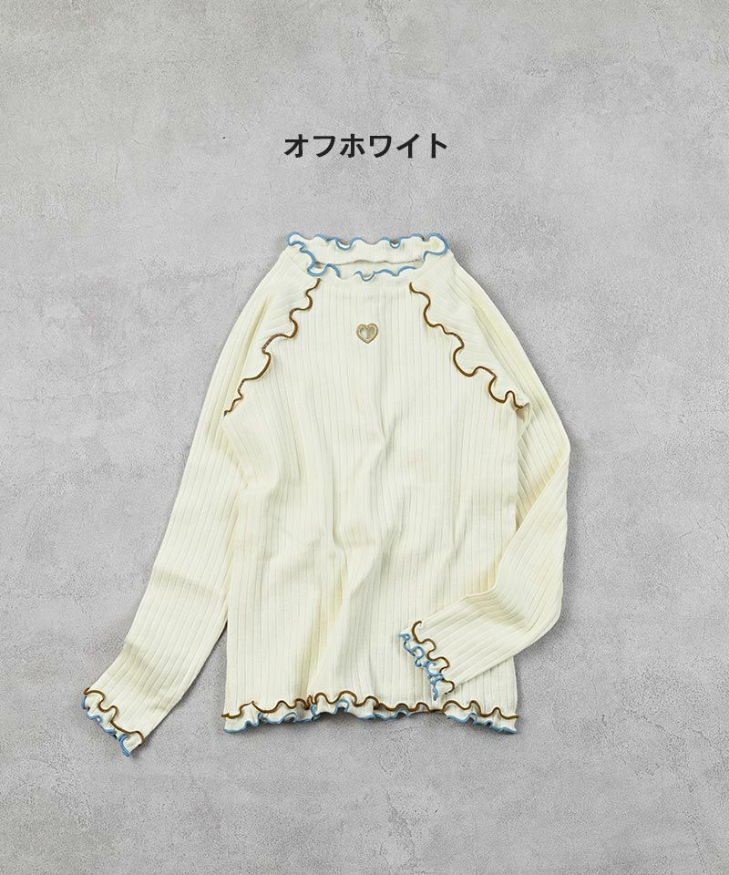 胸元にハート型の穴あきが施されているリブニットトップスです。