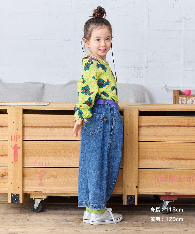 ダボっとデニムにタックインスタイルでガーリーカジュアルコーデも◎