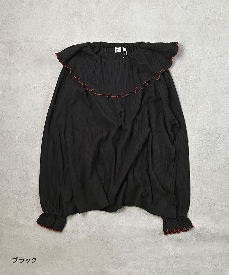 首元と袖口はゴム仕様にで、ふんわりとしたスタイルに。