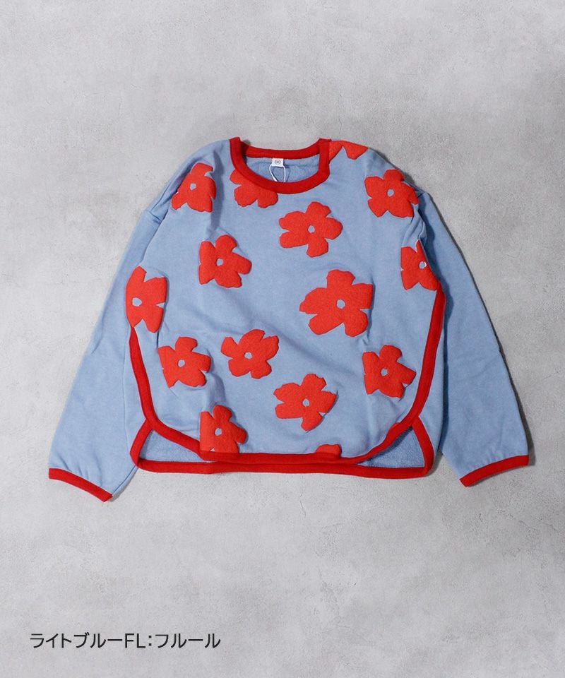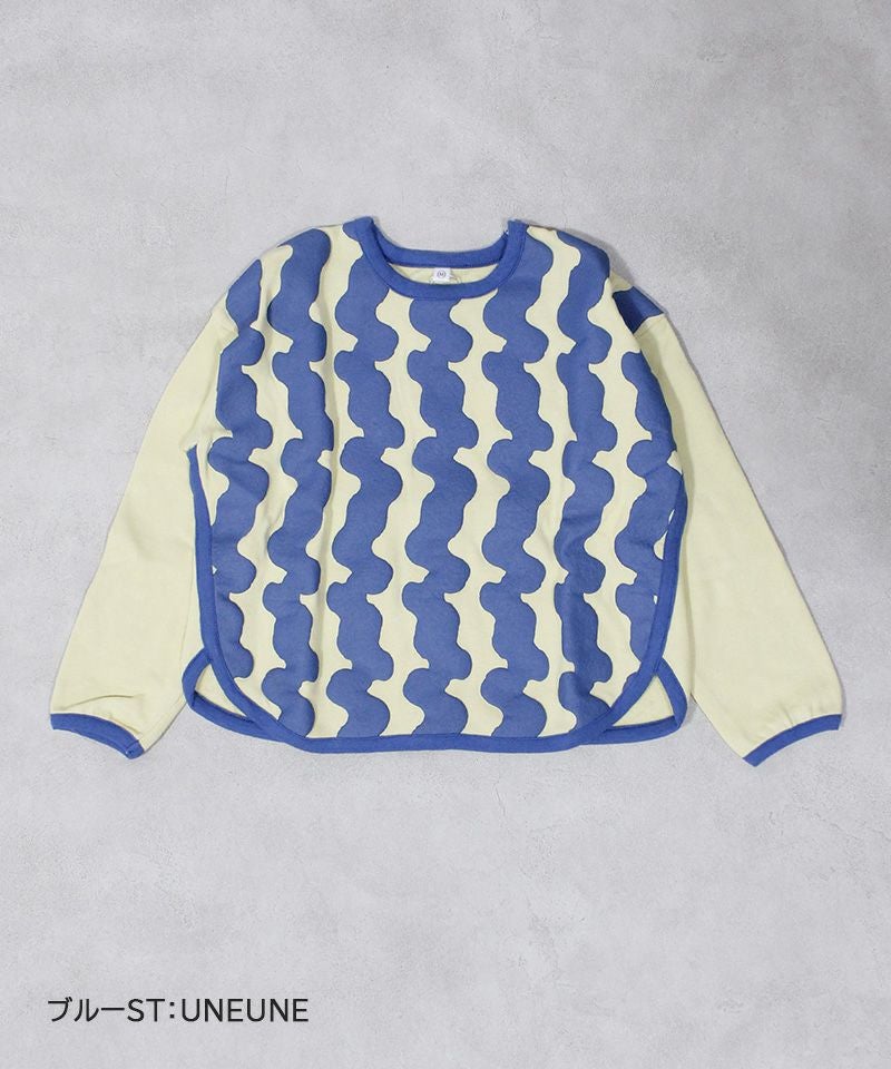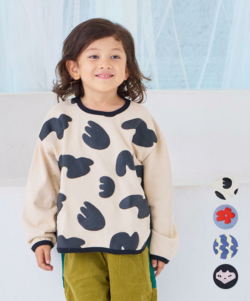 立体感のあるぷっくりプリントが目を引くトレーナー。
