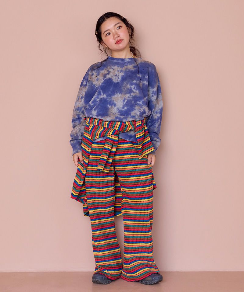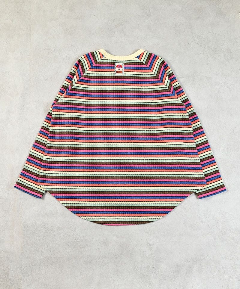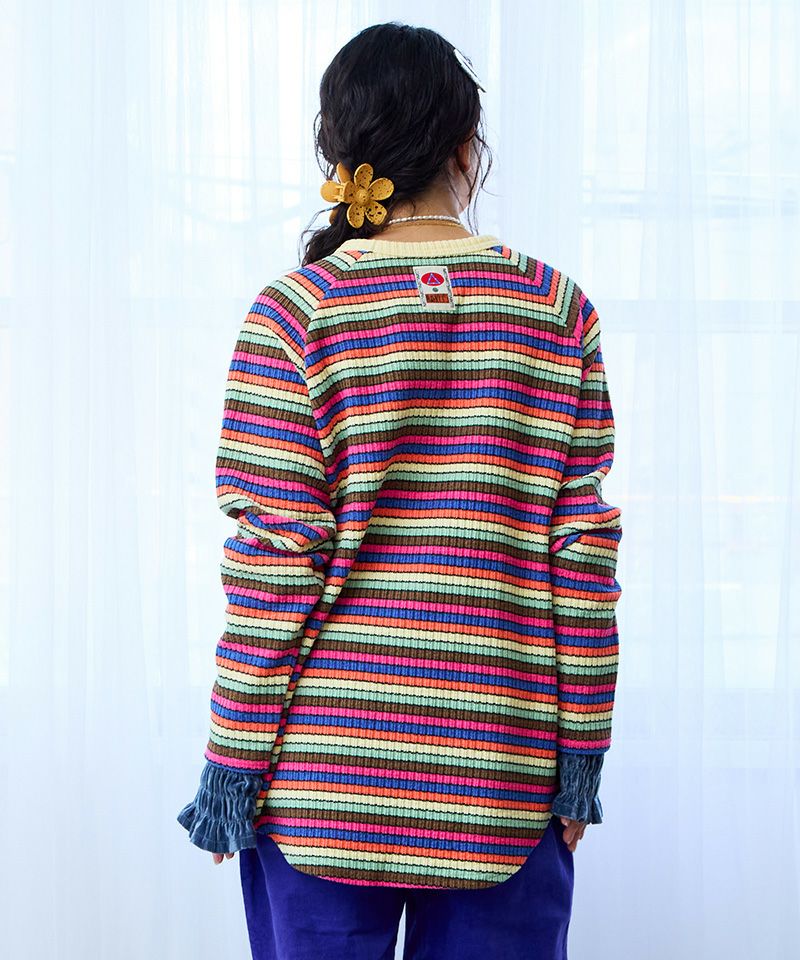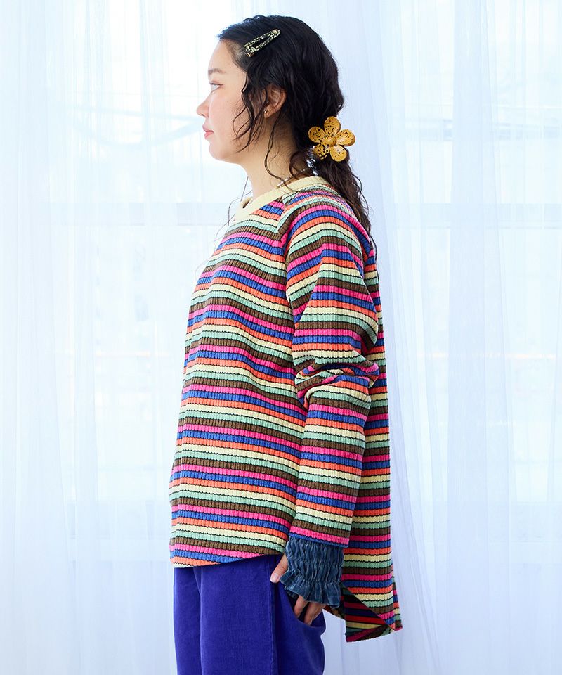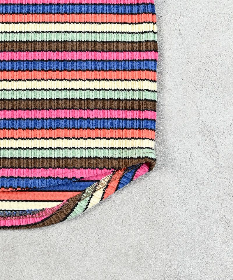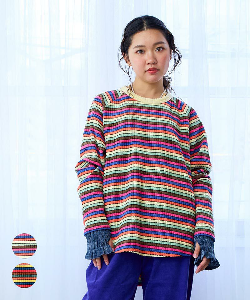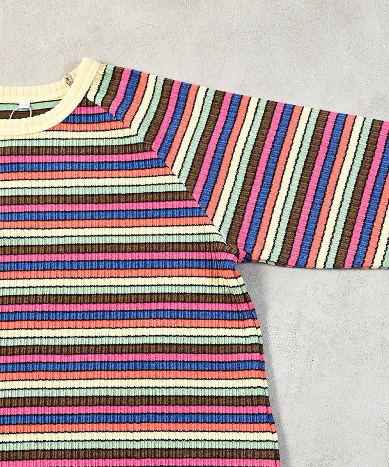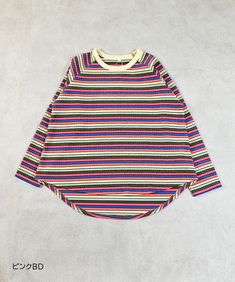 元気いっぱいのマルチボーダー柄が目を引くカットソー。