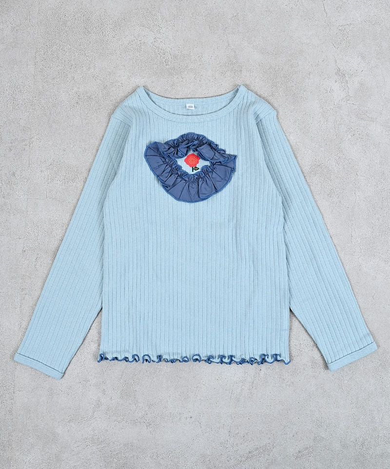 ・襟元にサテンフリルをあしらったアクセントデザイン