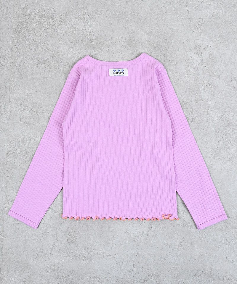 【サテンフリルが華やかに見せるリブカットソー】