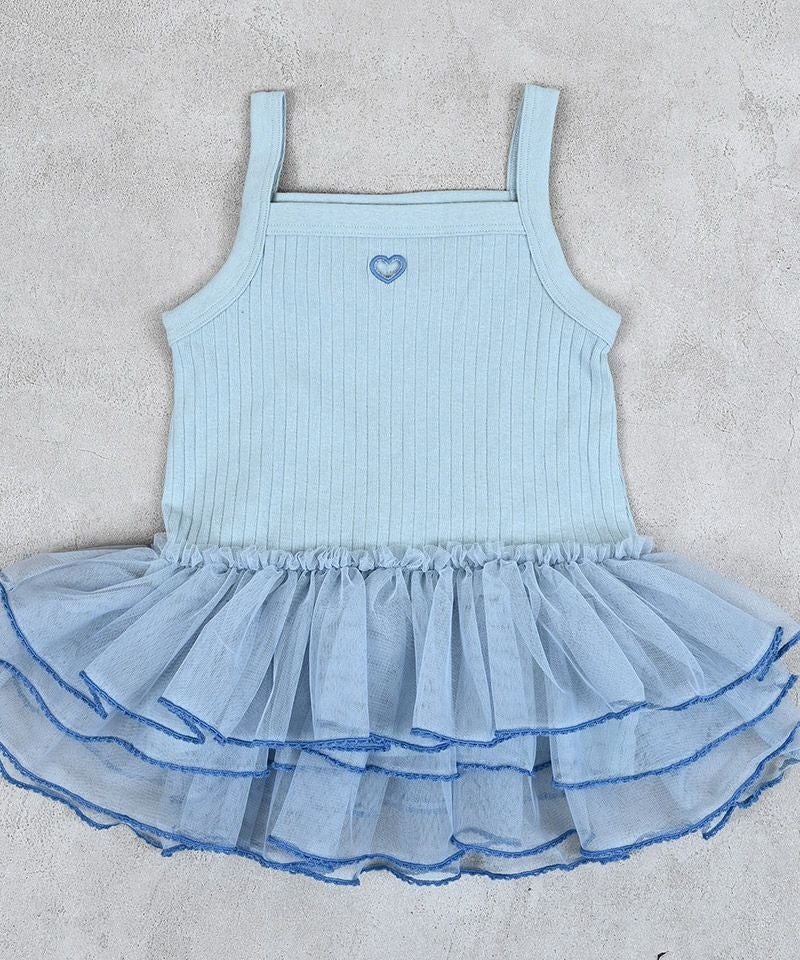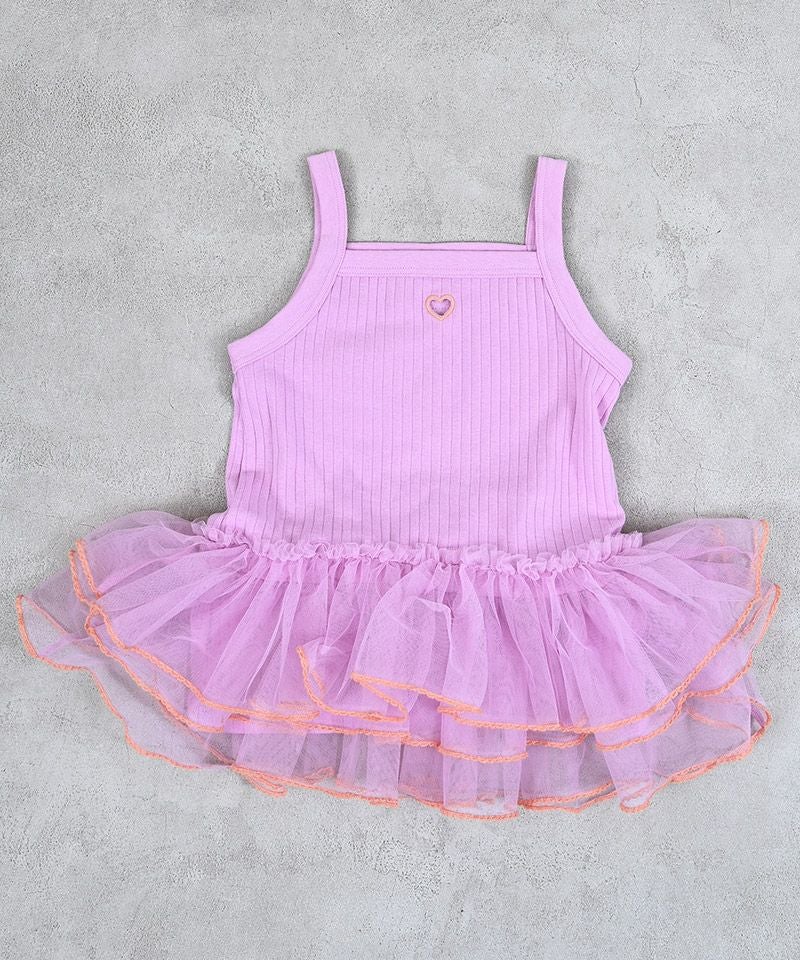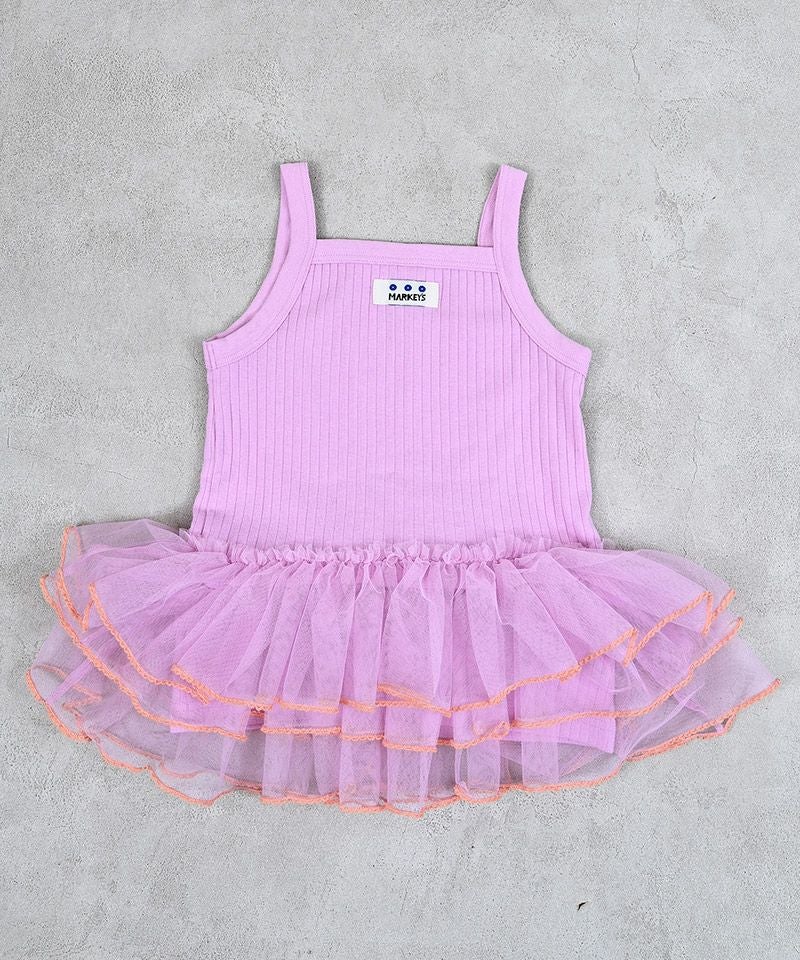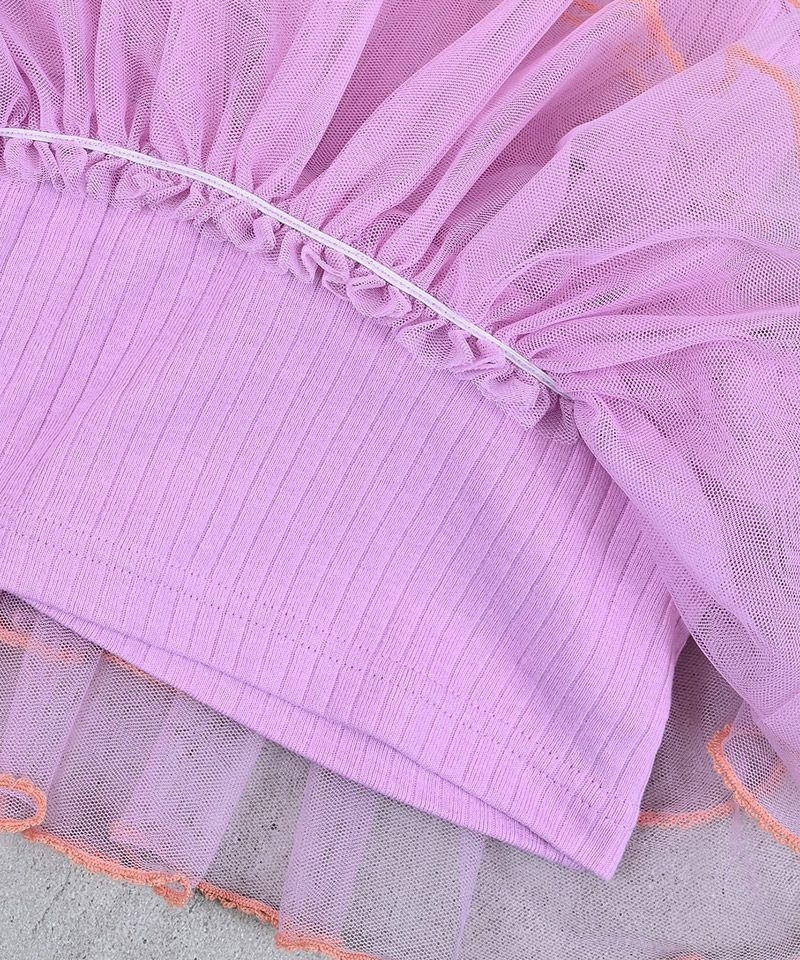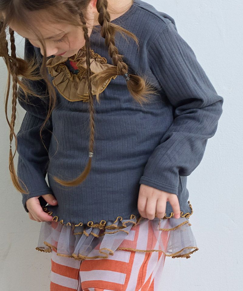 ・リブ素材のトップス×チュールフリルを組み合わせたドッキングデザイン
