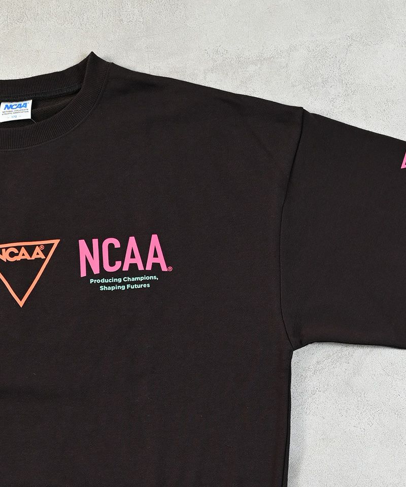 色んな“NCAA”のブランドロゴがデザインがされているスウェット。