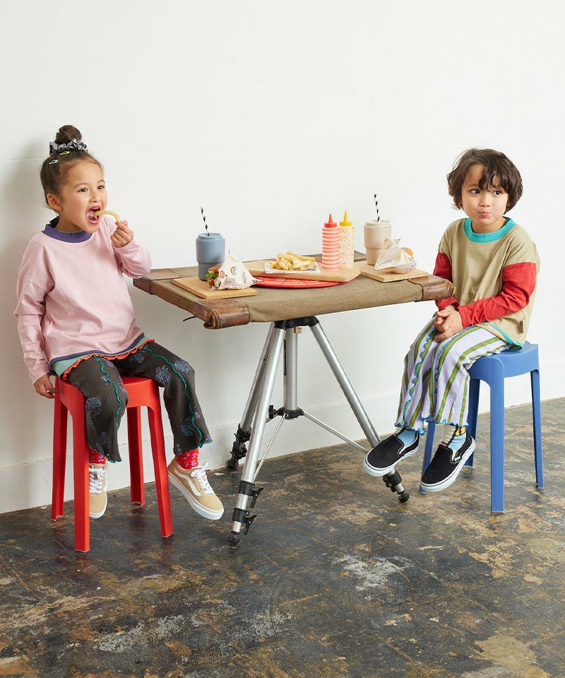 食べこぼしなどの汚れが洗濯で落ちやすい防汚加工を施した配色ロンT!