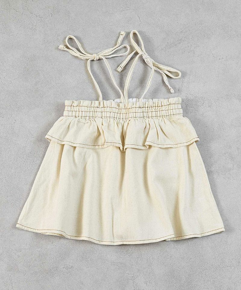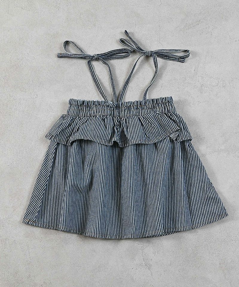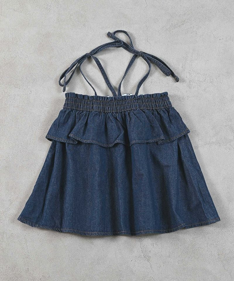 肩ヒモは結ぶ長さによって調整が可能で、結び目のリボンもコーデのアクセントに♪