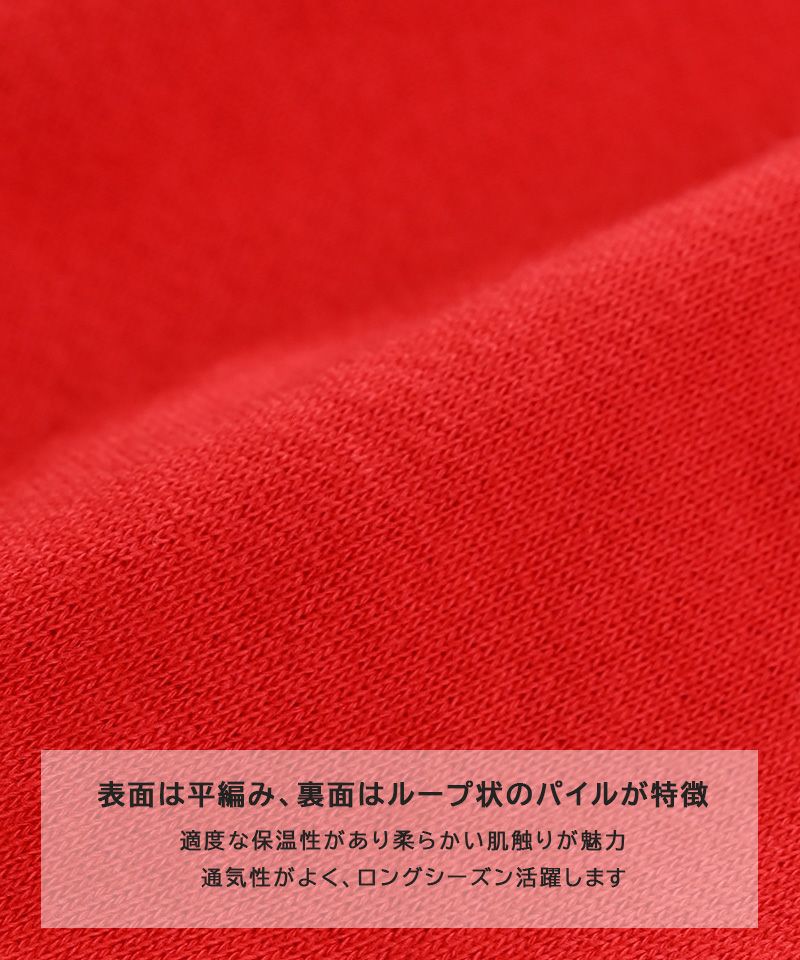 表面は平編み、裏面はループ状のパイルが特徴。