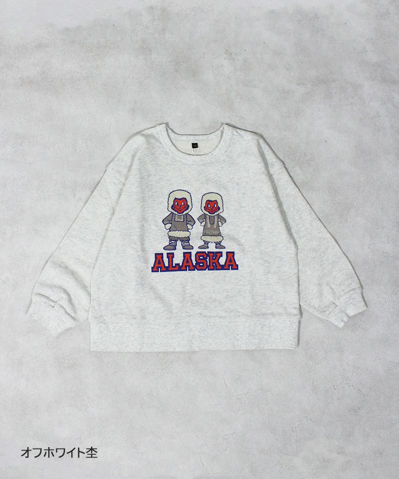 世界の町をイメージしたグラフィックが印象的なトレーナー。