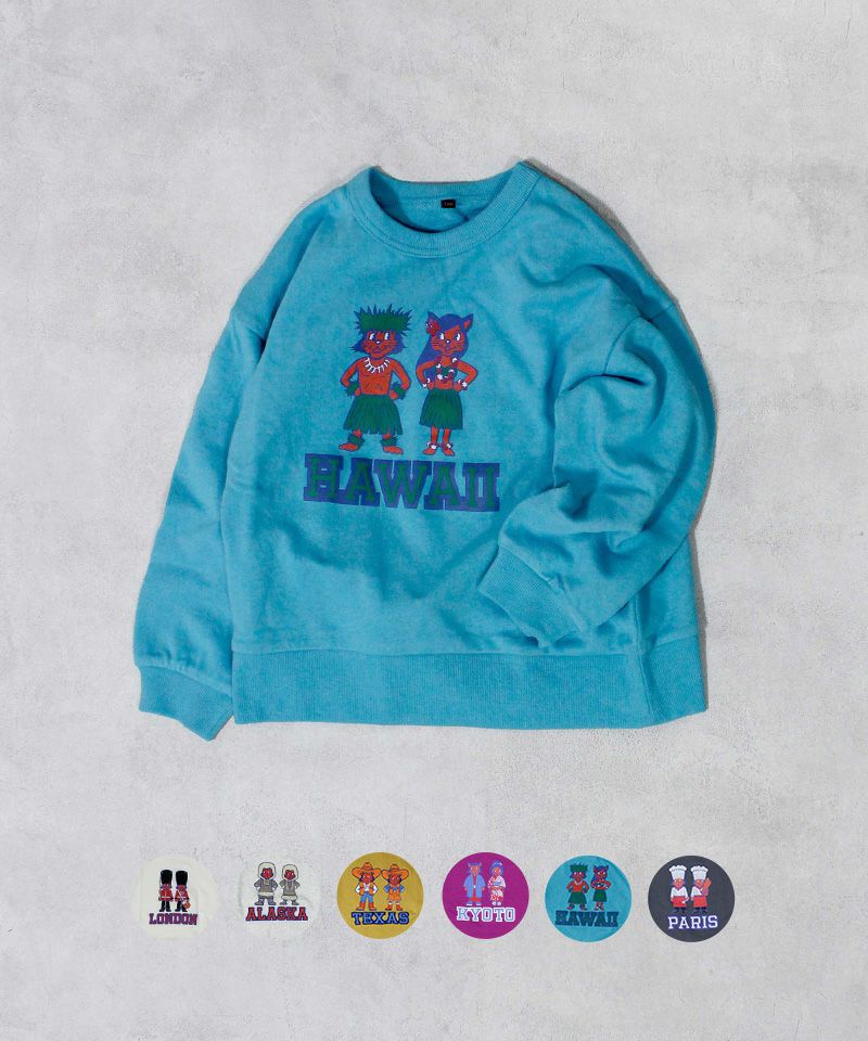 世界の町をイメージしたグラフィックが印象的なトレーナー。