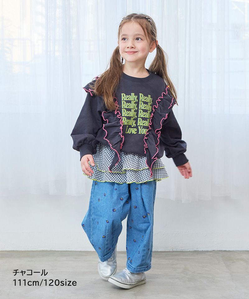 総柄ダブルフリルトレーナー