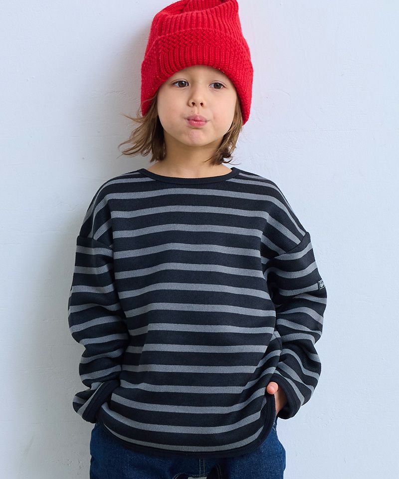 存在感のある配色ボーダーが目を引く、カジュアルなロングスリーブトップス。