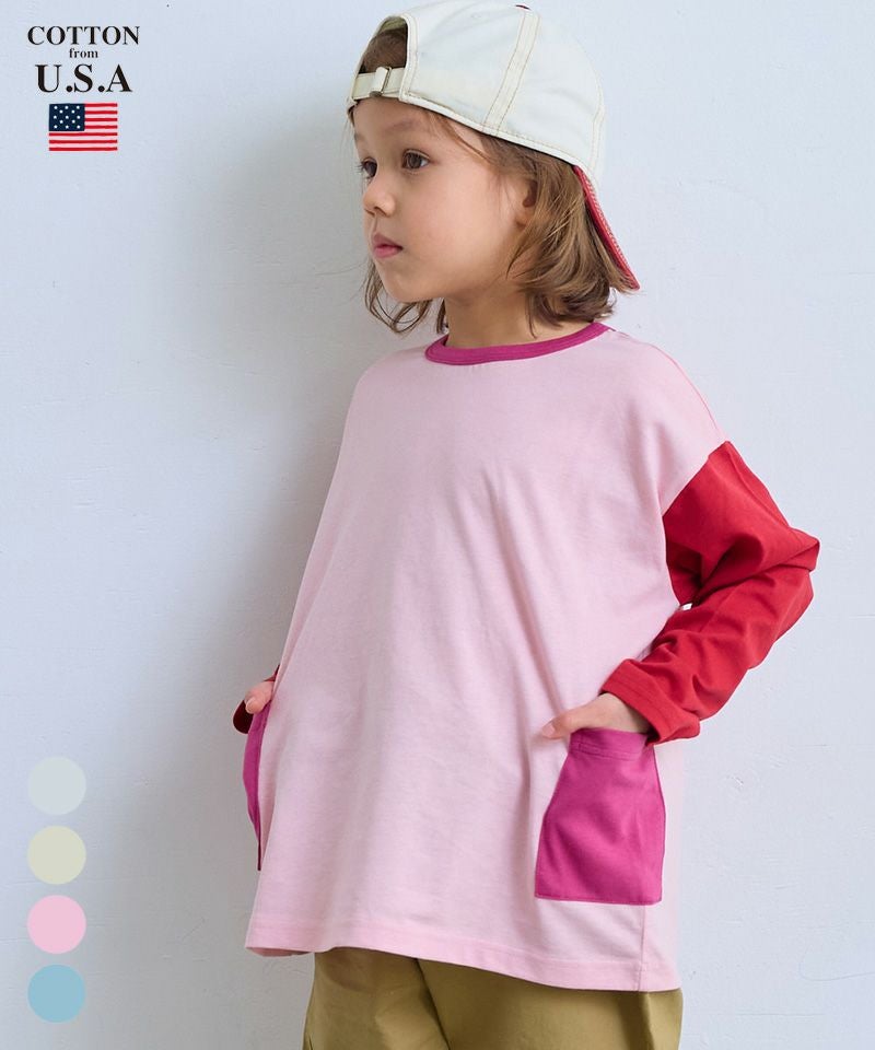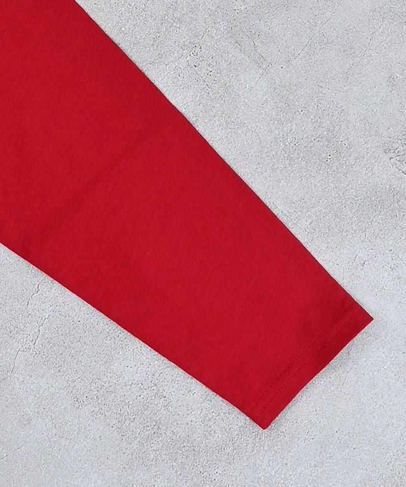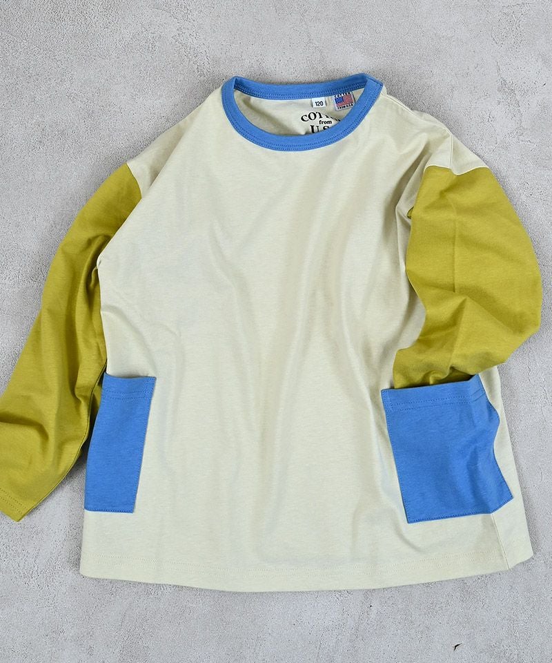 袖を大胆に切り替えたクレイジー配色が主役の長袖Tシャツです。
