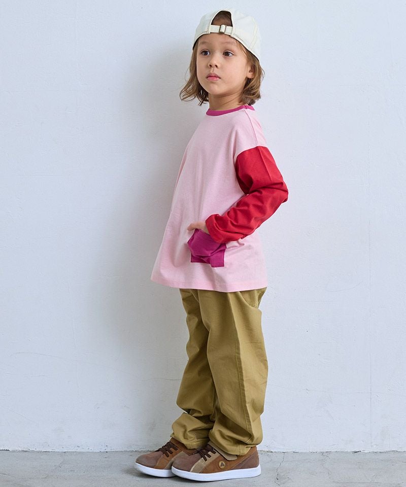 フロントの配色ポケットがさりげないアクセントになり、シンプルなのにしっかり映える1枚に仕上げました。