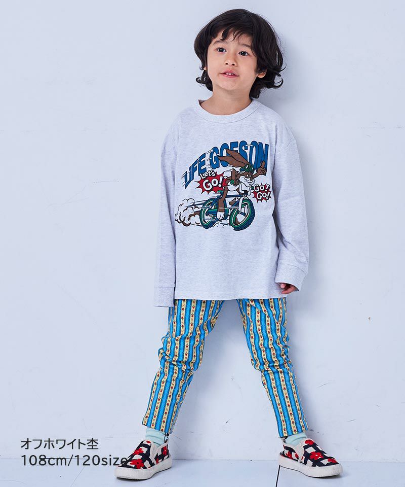 ベストやシャツを重ねてもプリントが映えて季節感のあるレイヤードが楽しめます。
