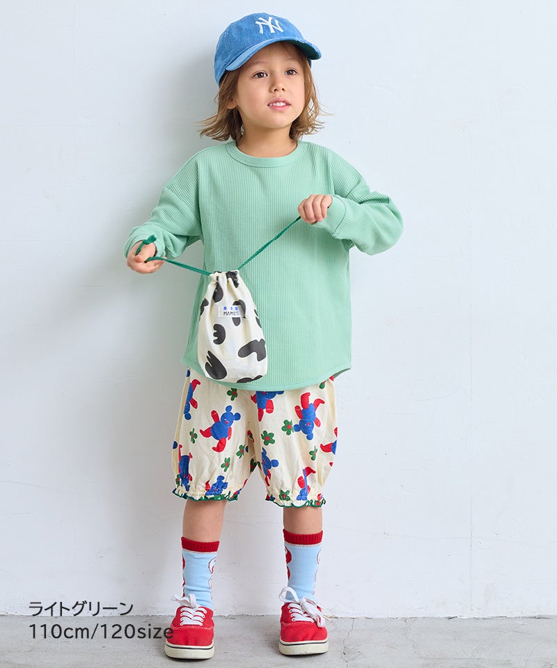 スモッキングスリーブワッフルカットソー / 大人サイズ