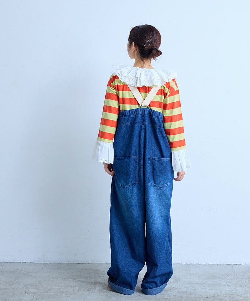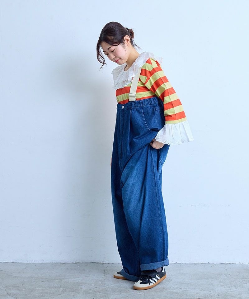 サロペットやジャンパースカートのインナーにすると、襟元が映えて写真映えも◎。