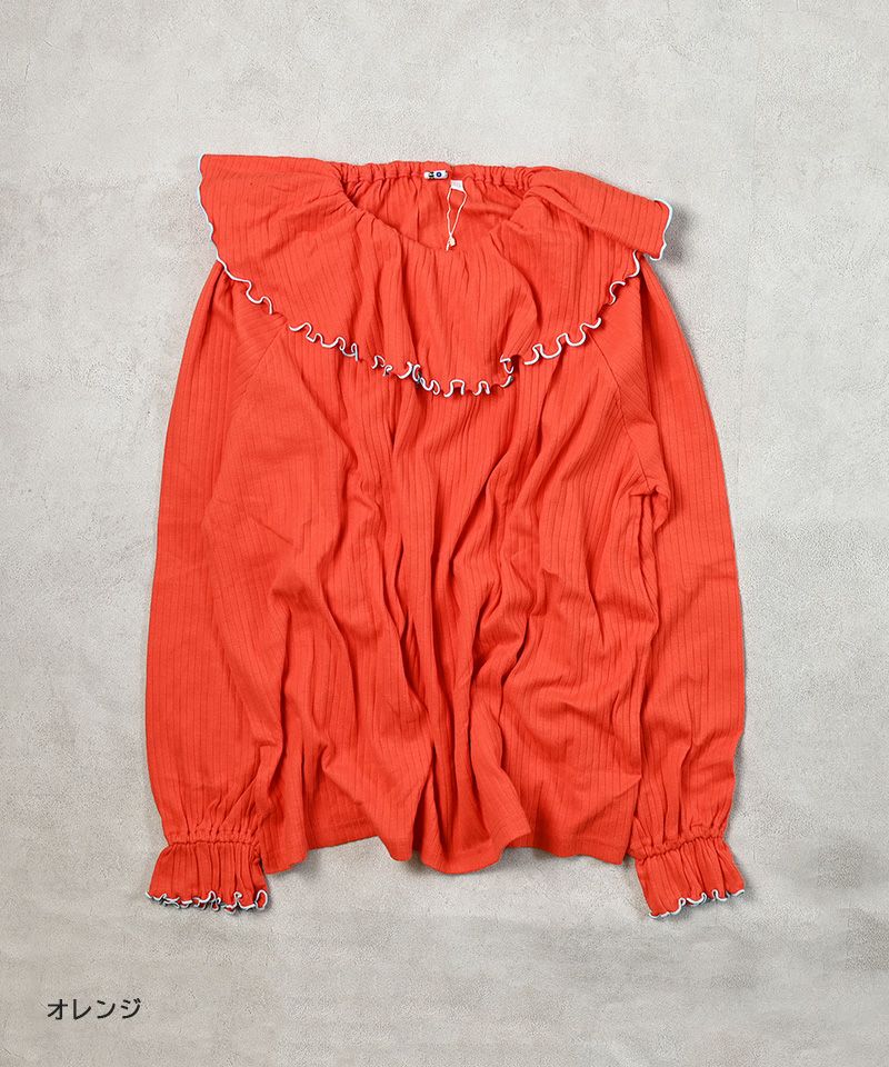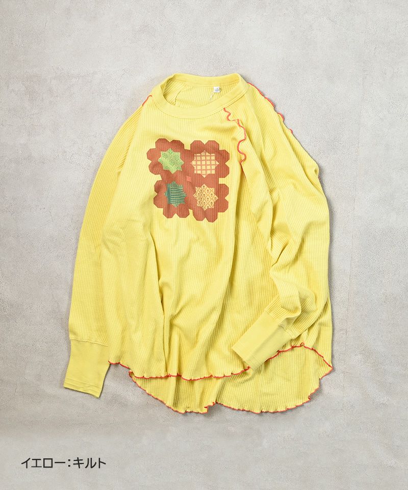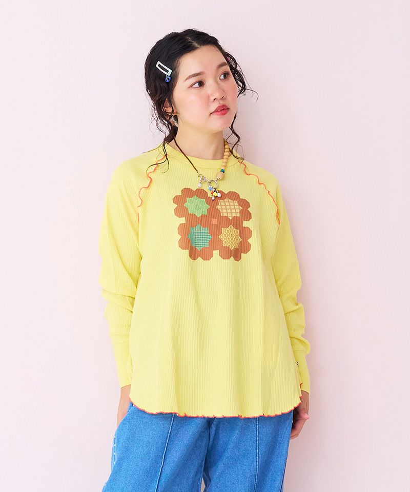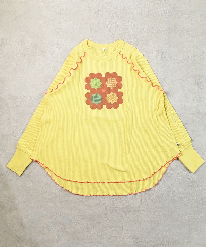 両面ワッフル襟刺繍メローカットソー【販売店舗限定アイテム】
